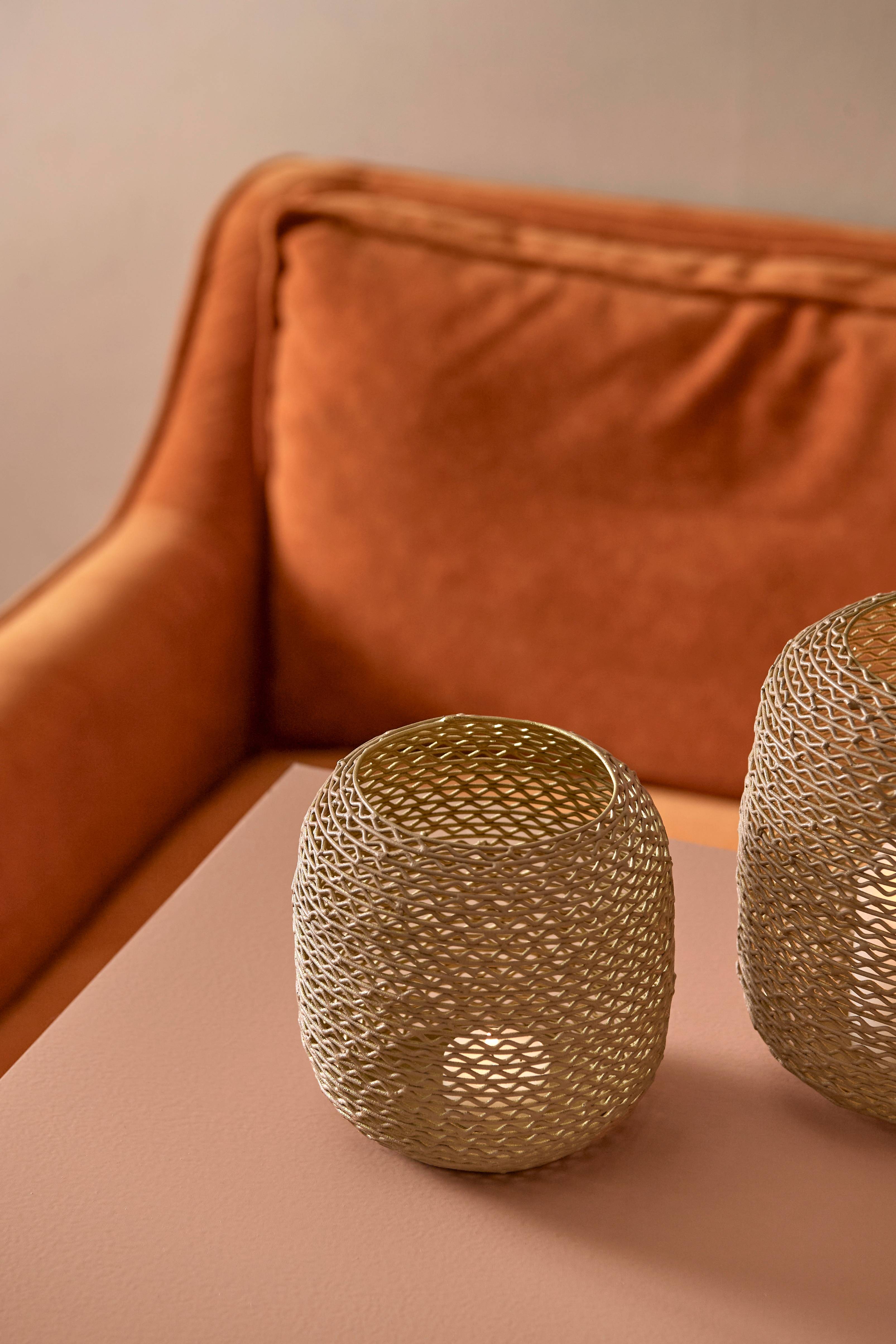 • Ljuslykta i trådmetall• Textilklädd undersida