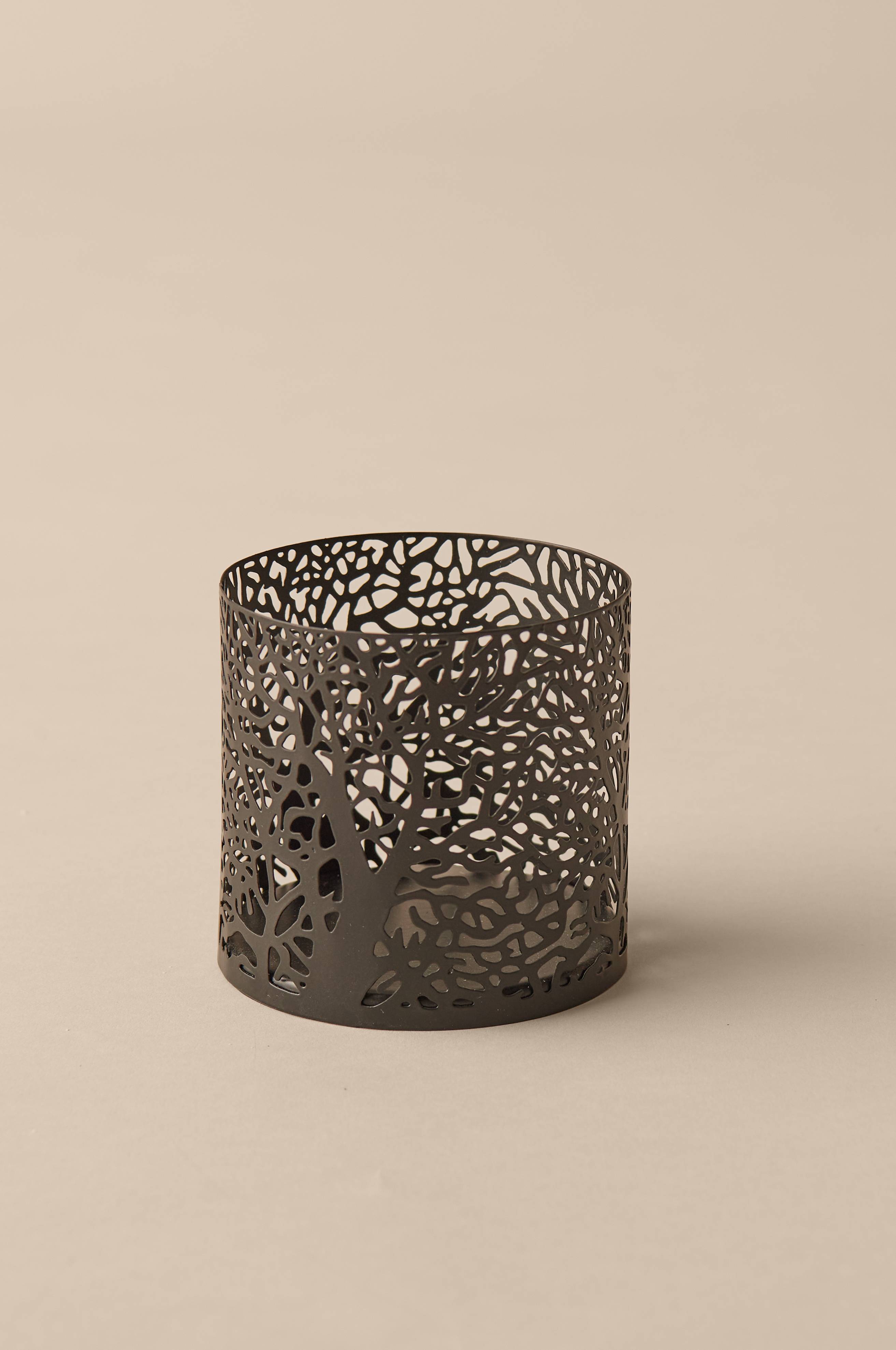 Ljuslykta av metall med genombrutet mönster.