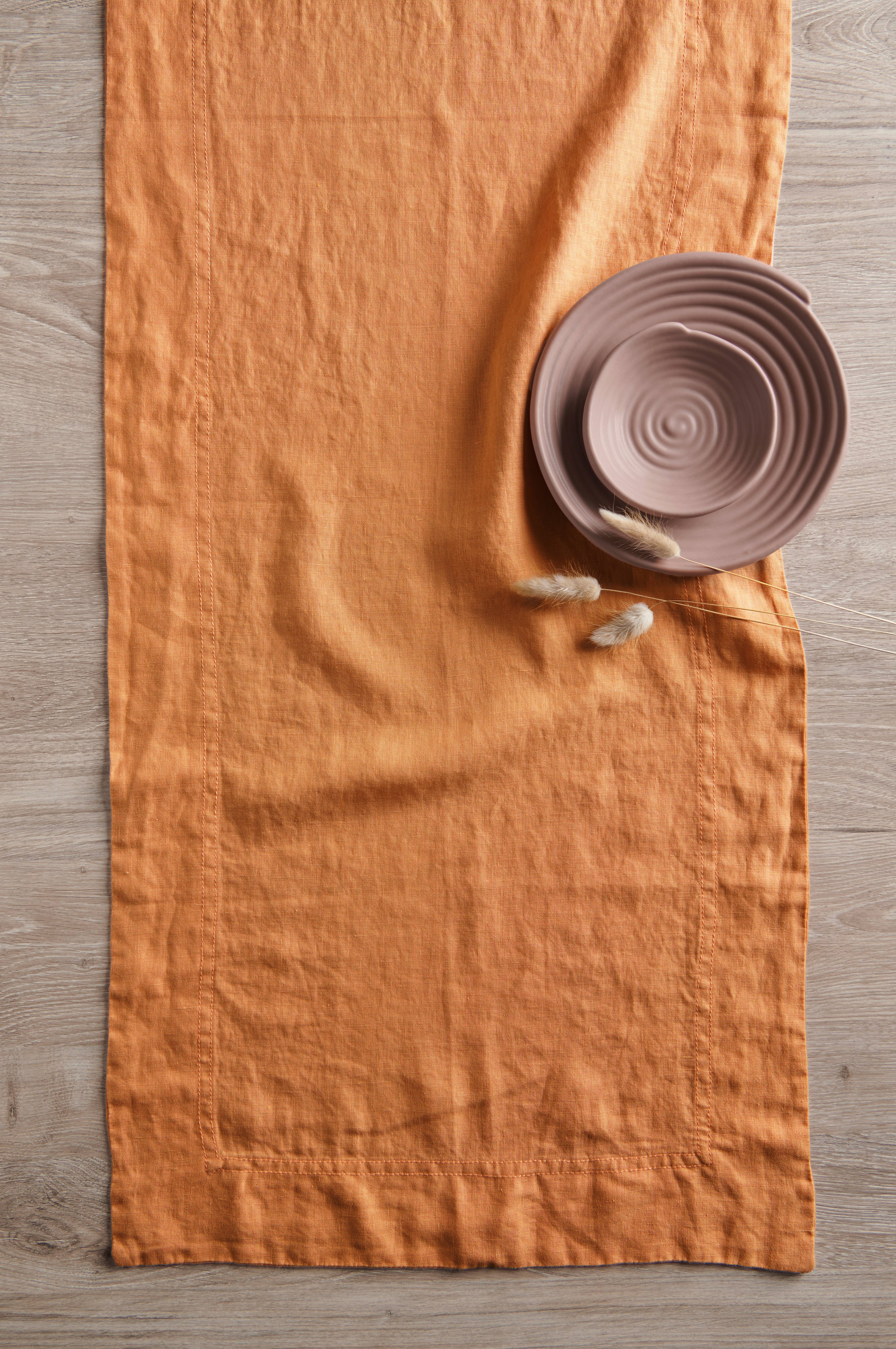 Löpare i tvättat lin med vacker struktur. Stl 45x150 cm.