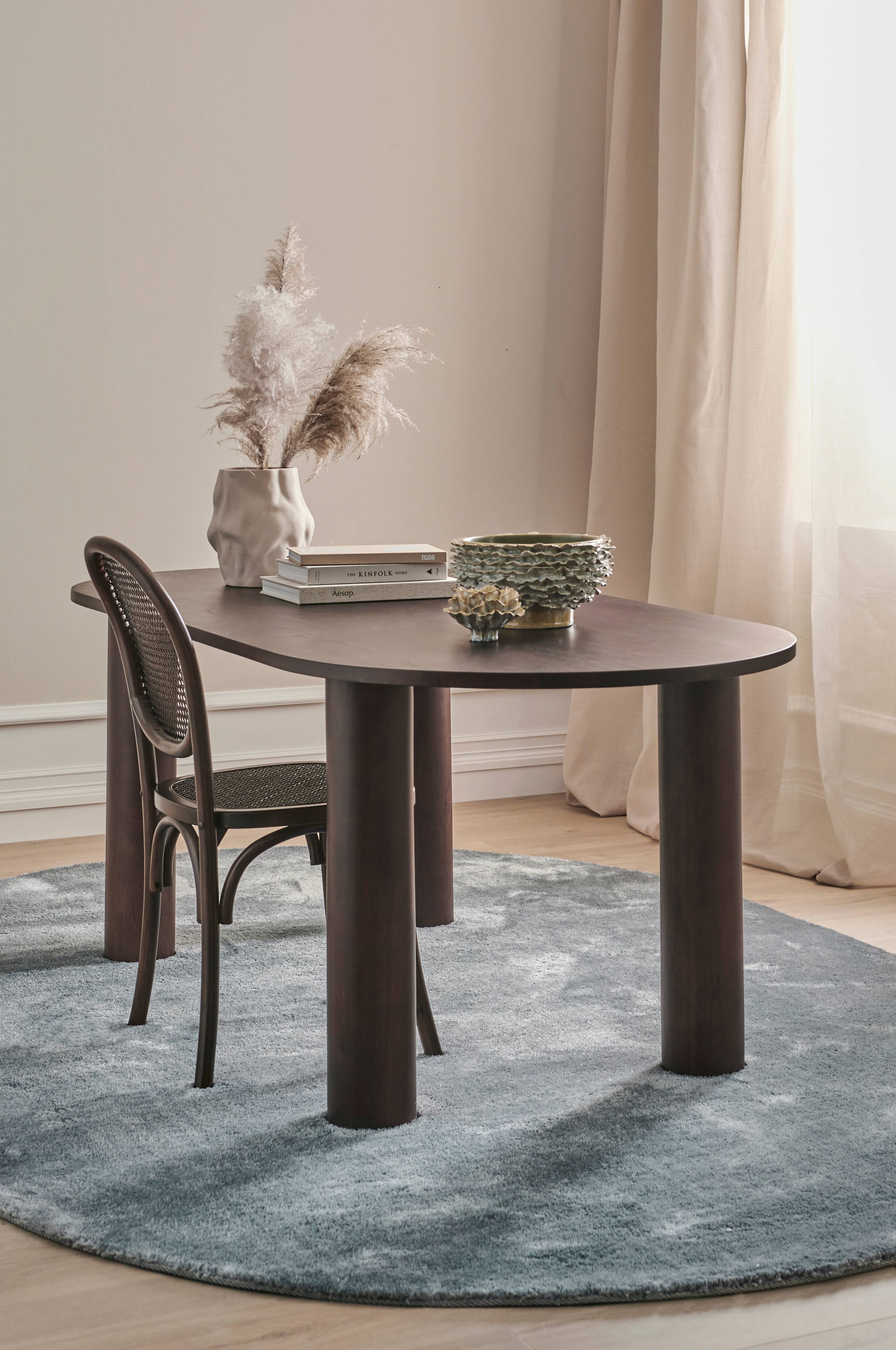 Oval, tuftad matta i mjuk kvalitet med skimrande lyster. Tjocklek 2 cm.
