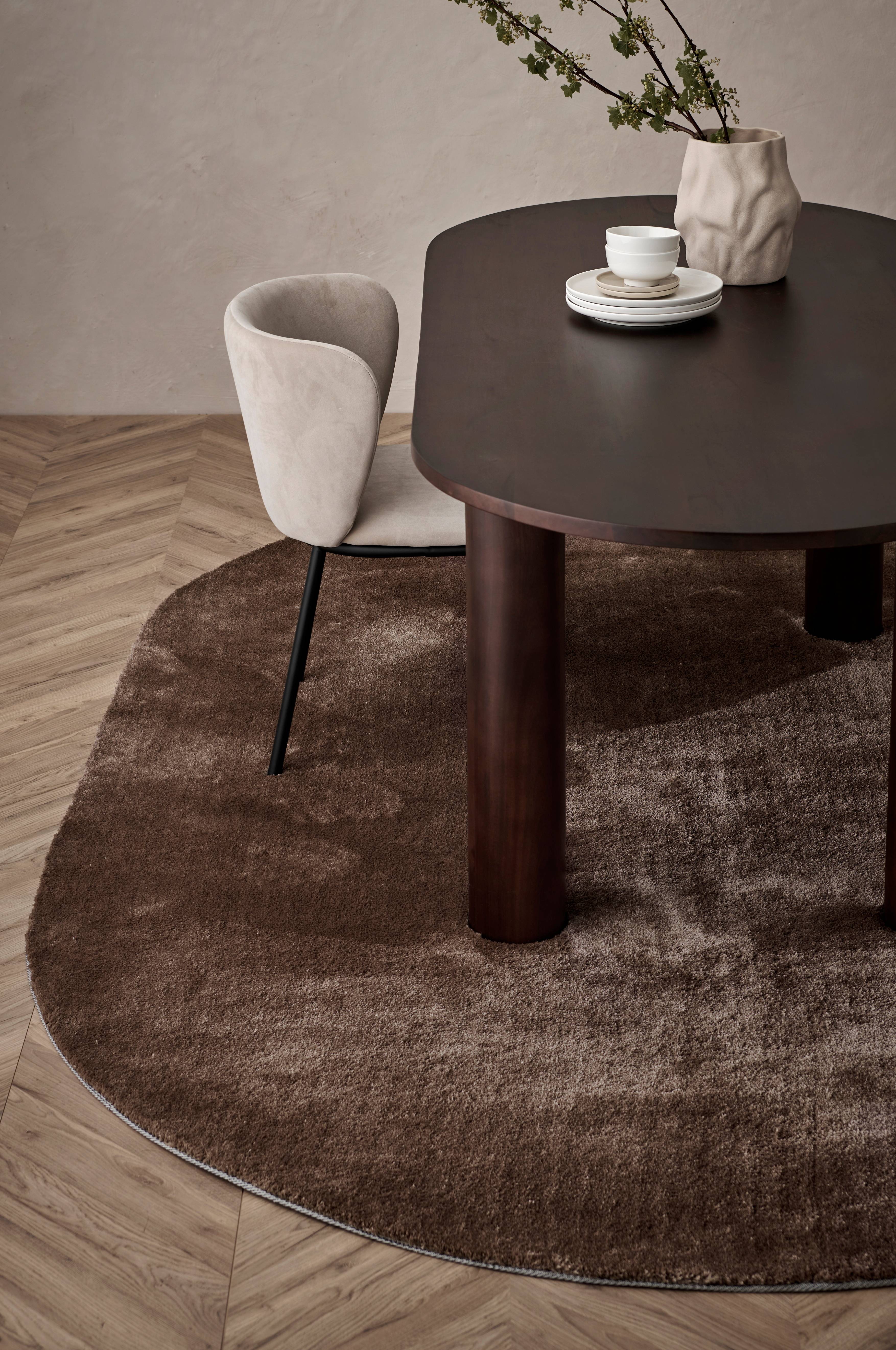 Oval, tuftad matta i mjuk kvalitet med skimrande lyster. Tjocklek 2 cm.