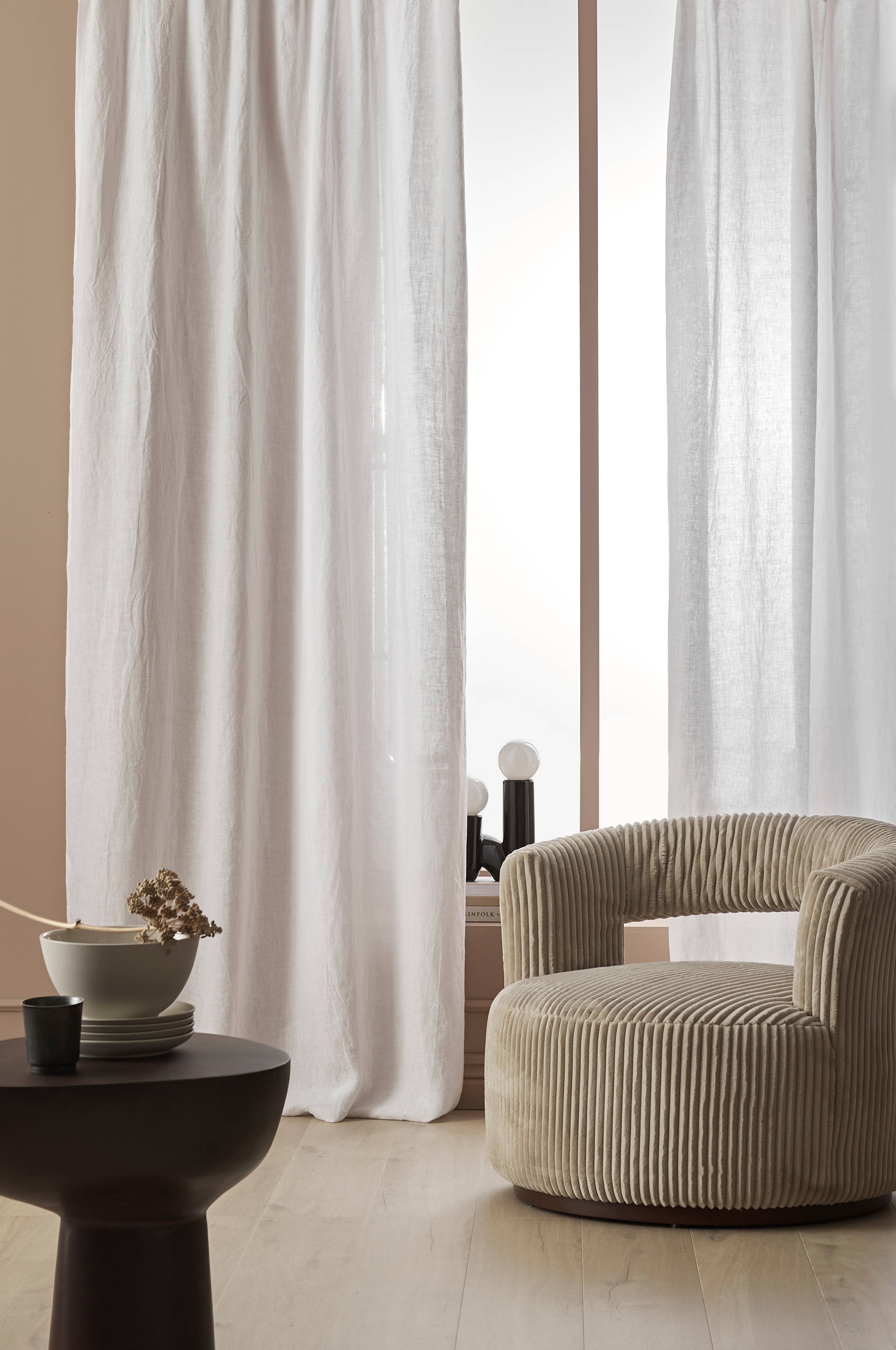 Två multibandslängder i 100% lin. Multibanden gör att du antingen kan hänga gardinerna direkt på en gardinstång genom de gömda hällorna eller använda ringar, nålkrokar eller fingerkrokar. Bredd 140 cm.