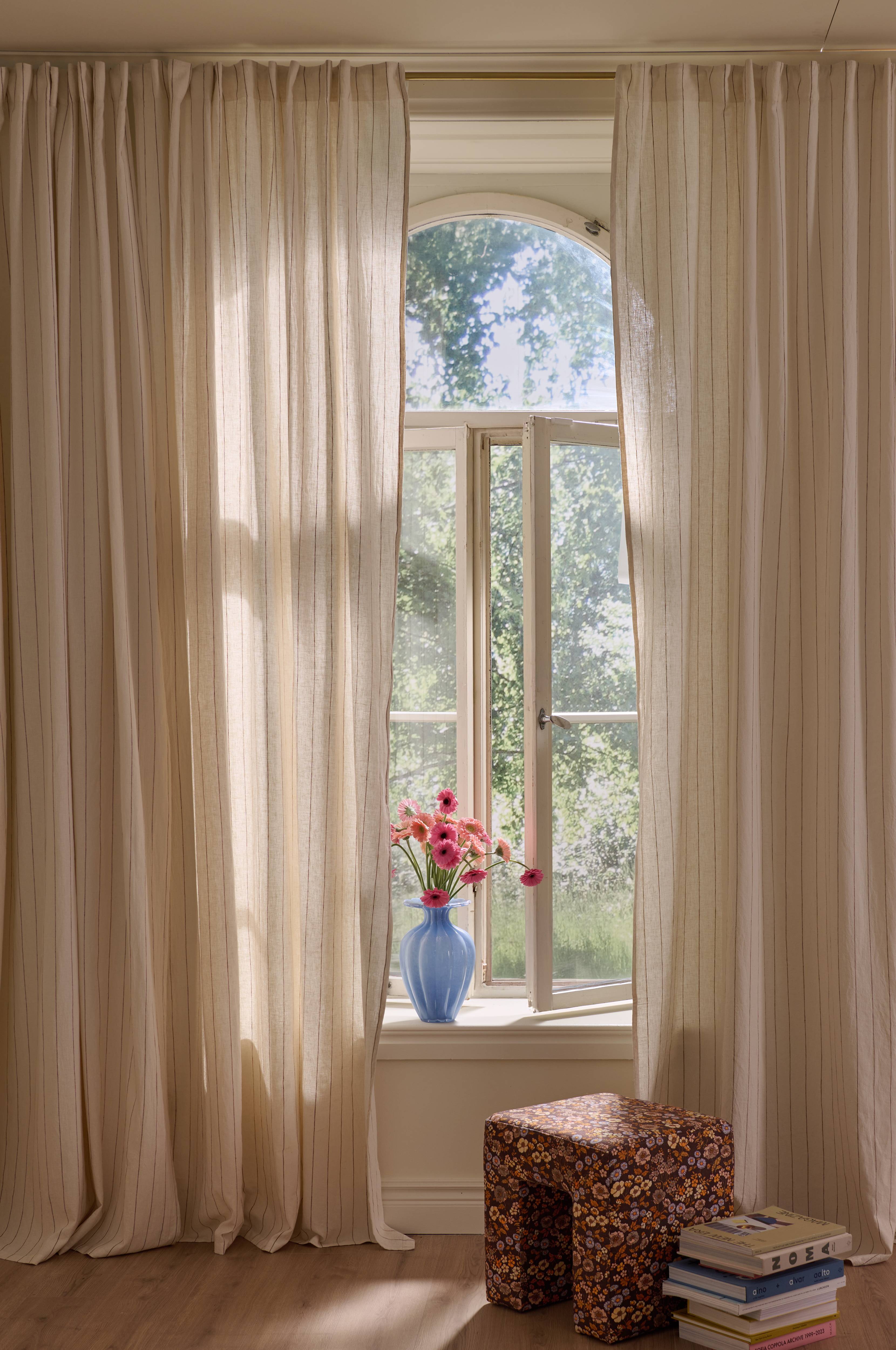 • Multibanden gör att du antingen kan hänga gardinerna direkt på en gardinstång genom de gömda hällorna eller använda ringar, nålkrokar eller fingerkrokar. Snören i rynkbandet gör att du lätt kan skapa jämna, fina veck.