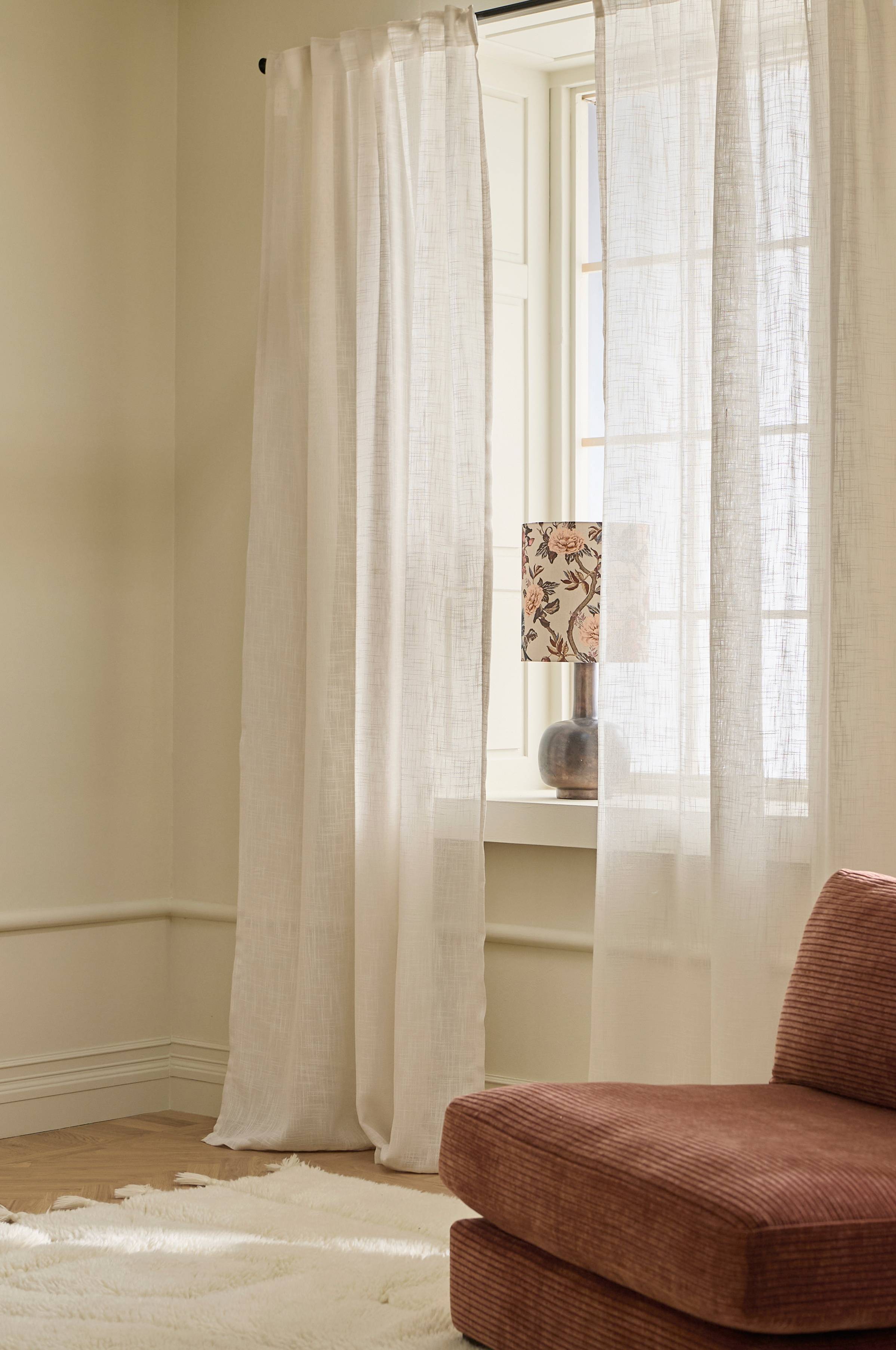 • Multibanden gör att du antingen kan hänga gardinerna direkt på en gardinstång genom de gömda hällorna eller använda ringar, nålkrokar eller fingerkrokar. Snören i rynkbandet gör att du lätt kan skapa jämna, fina veck.