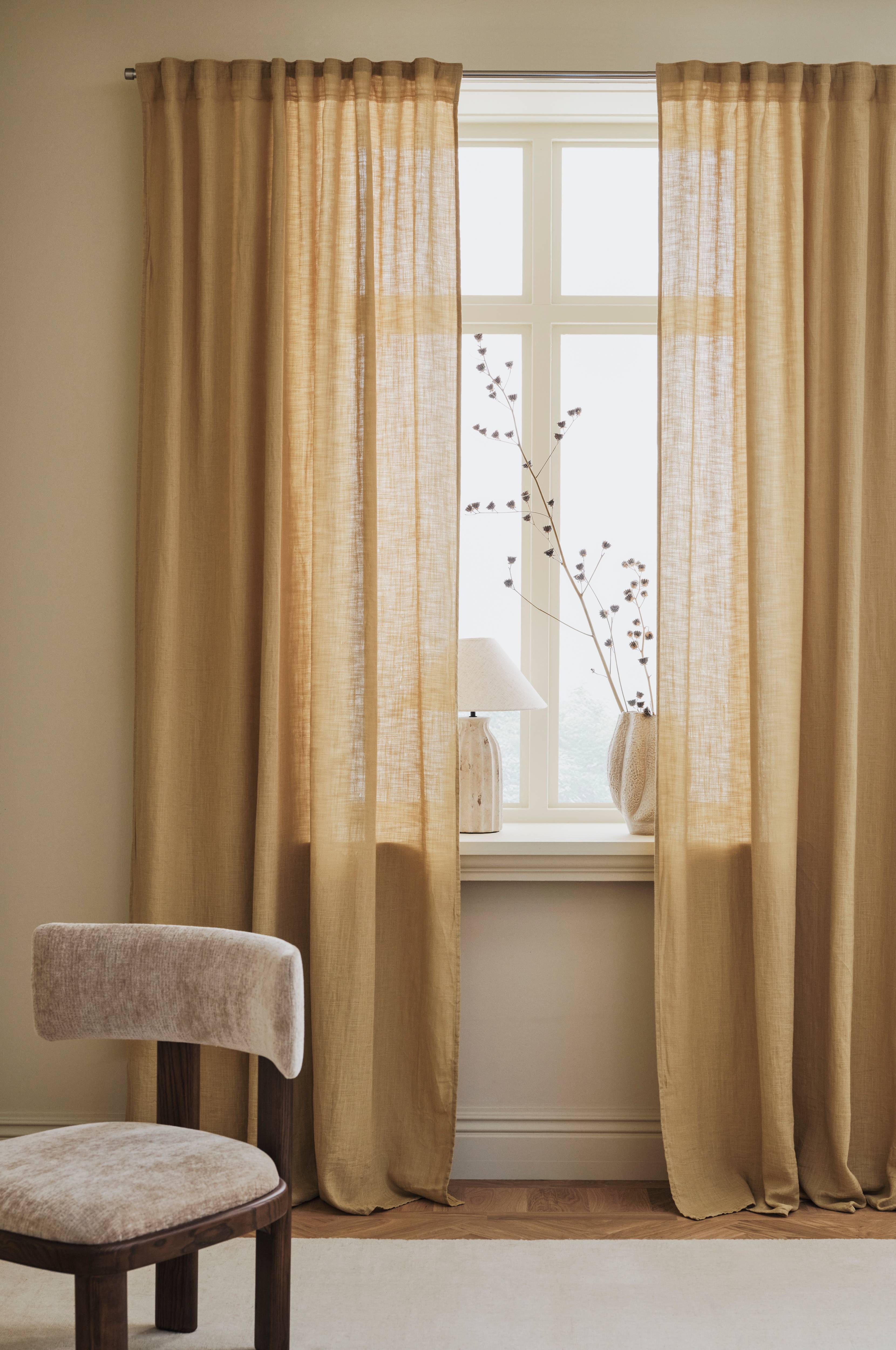 • Multibanden gör att du antingen kan hänga gardinerna direkt på en gardinstång genom de gömda hällorna eller använda ringar, nålkrokar eller fingerkrokar. Snören i rynkbandet gör att du lätt kan skapa jämna, fina veck.