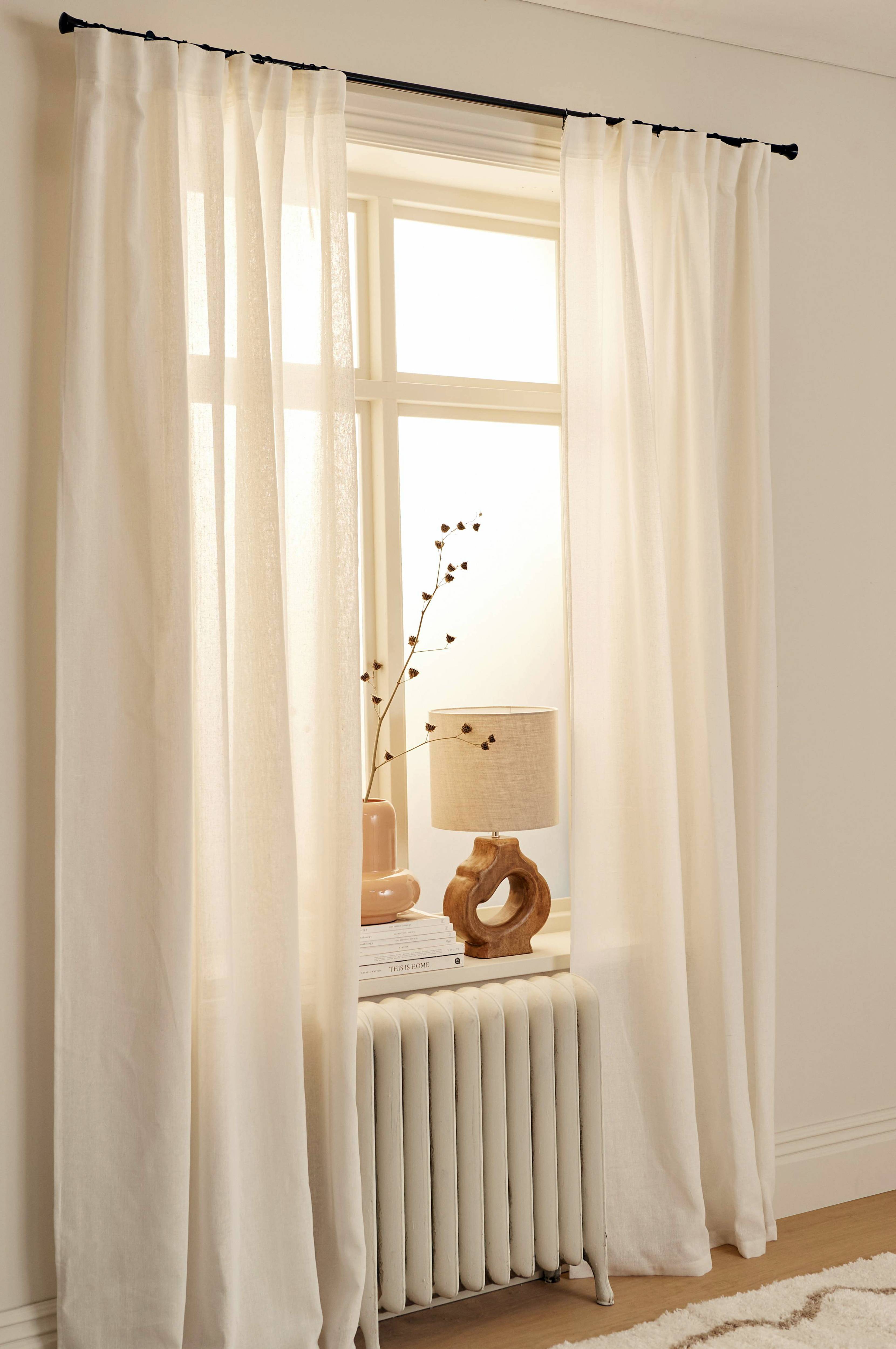 • Multibanden gör att du antingen kan hänga gardinerna direkt på en gardinstång genom de gömda hällorna eller använda ringar, nålkrokar eller fingerkrokar. Snören i rynkbandet gör att du lätt kan skapa jämna, fina veck.