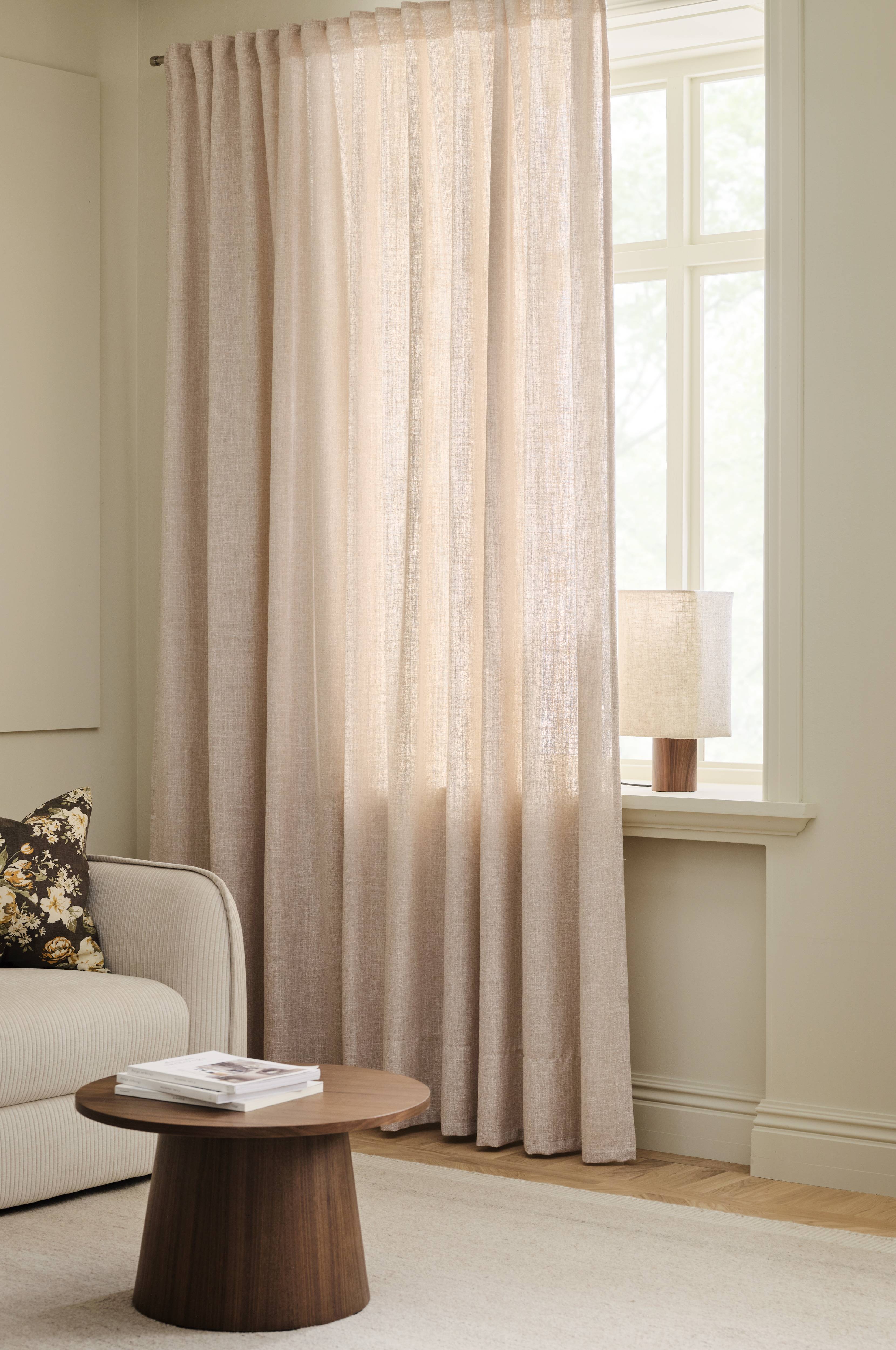 • Multibanden gör att du antingen kan hänga gardinerna direkt på en gardinstång genom de gömda hällorna eller använda ringar, nålkrokar eller fingerkrokar. Snören i rynkbandet gör att du lätt kan skapa jämna, fina veck.