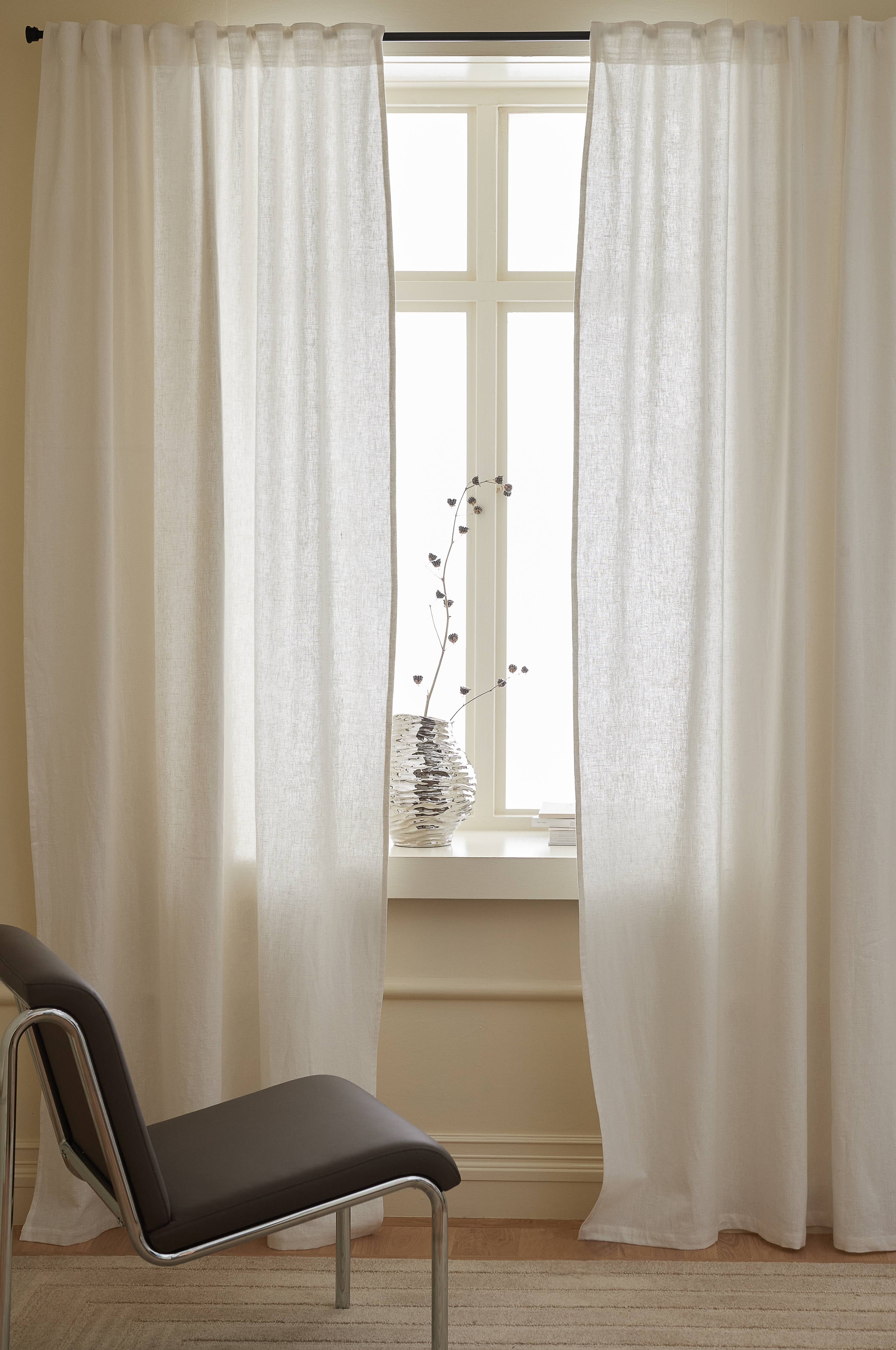 • Multibanden gör att du antingen kan hänga gardinerna direkt på en gardinstång genom de gömda hällorna eller använda ringar, nålkrokar eller fingerkrokar. Snören i rynkbandet gör att du lätt kan skapa jämna, fina veck.