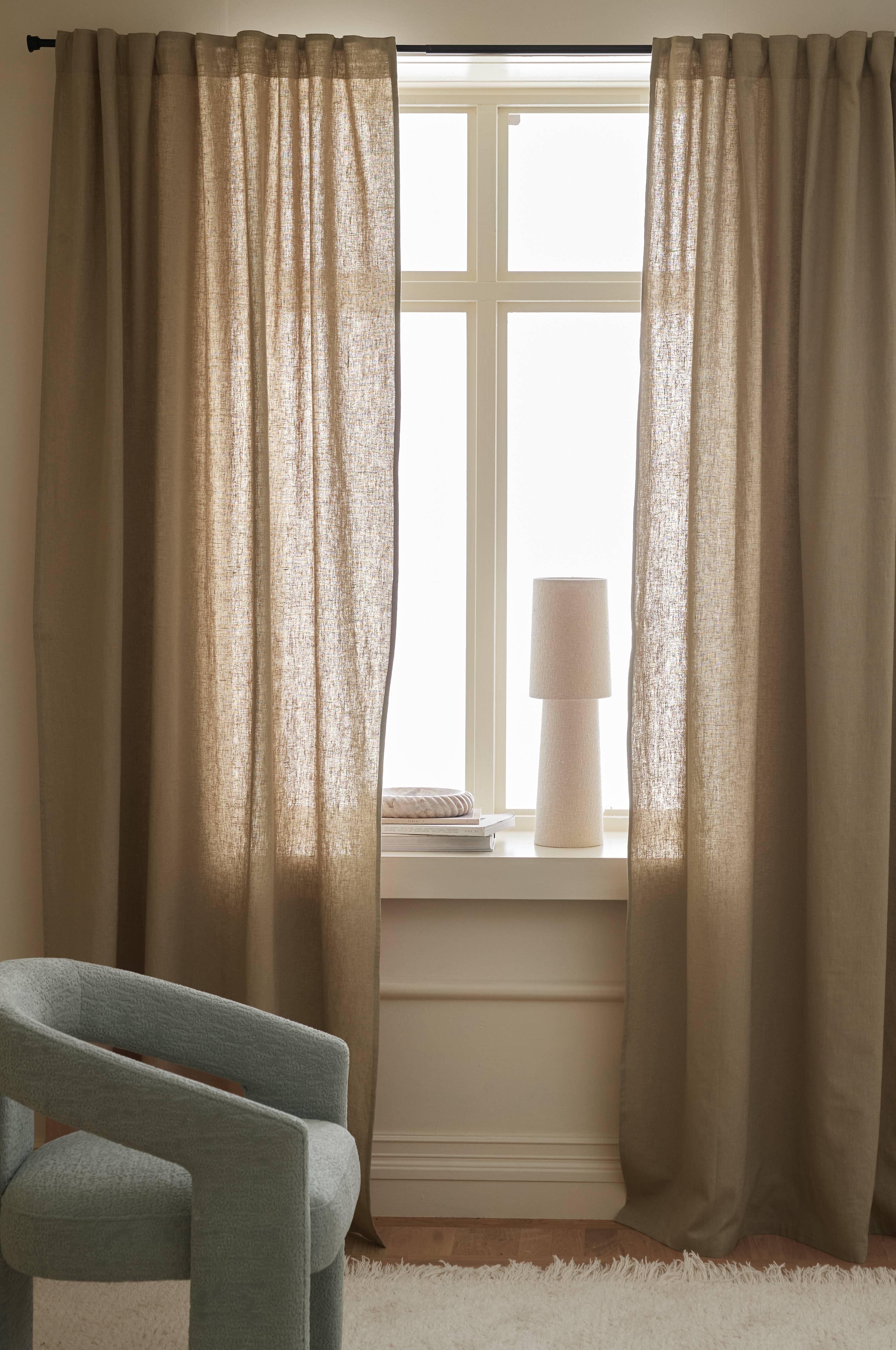 • Multibanden gör att du antingen kan hänga gardinerna direkt på en gardinstång genom de gömda hällorna eller använda ringar, nålkrokar eller fingerkrokar. Snören i rynkbandet gör att du lätt kan skapa jämna, fina veck.