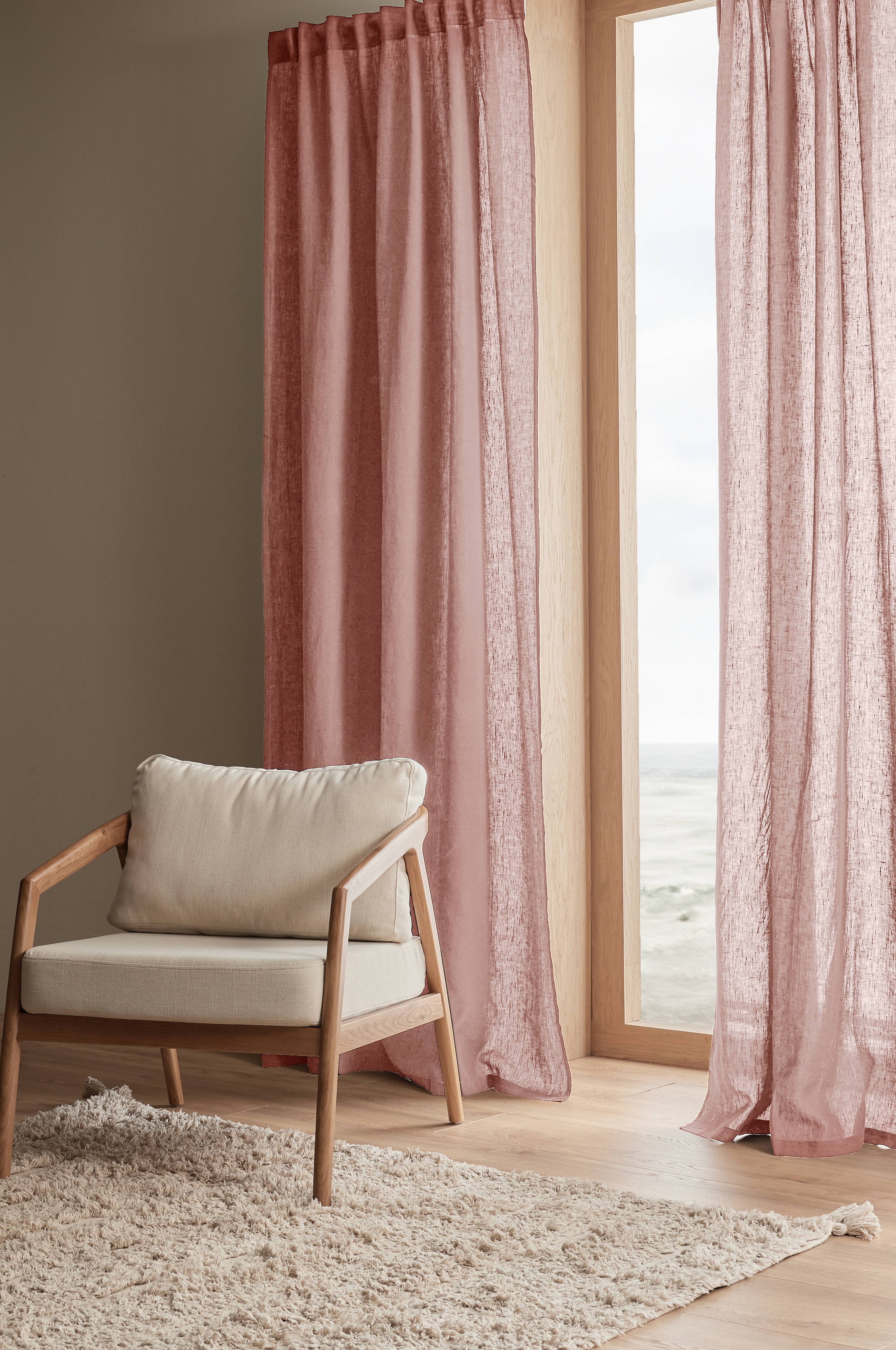 Två multibandslängder i tvättat lin med vacker struktur. Multibanden gör att du antingen kan hänga gardinerna direkt på en gardinstång genom de gömda hällorna eller använda ringar, nålkrokar eller fingerkrokar. Snören i rynkbandet gör att du lätt kan skapa jämna, fina veck. Kan även användas med rynkbandskrokar. Bredd 135 cm. Finns i flera längder.