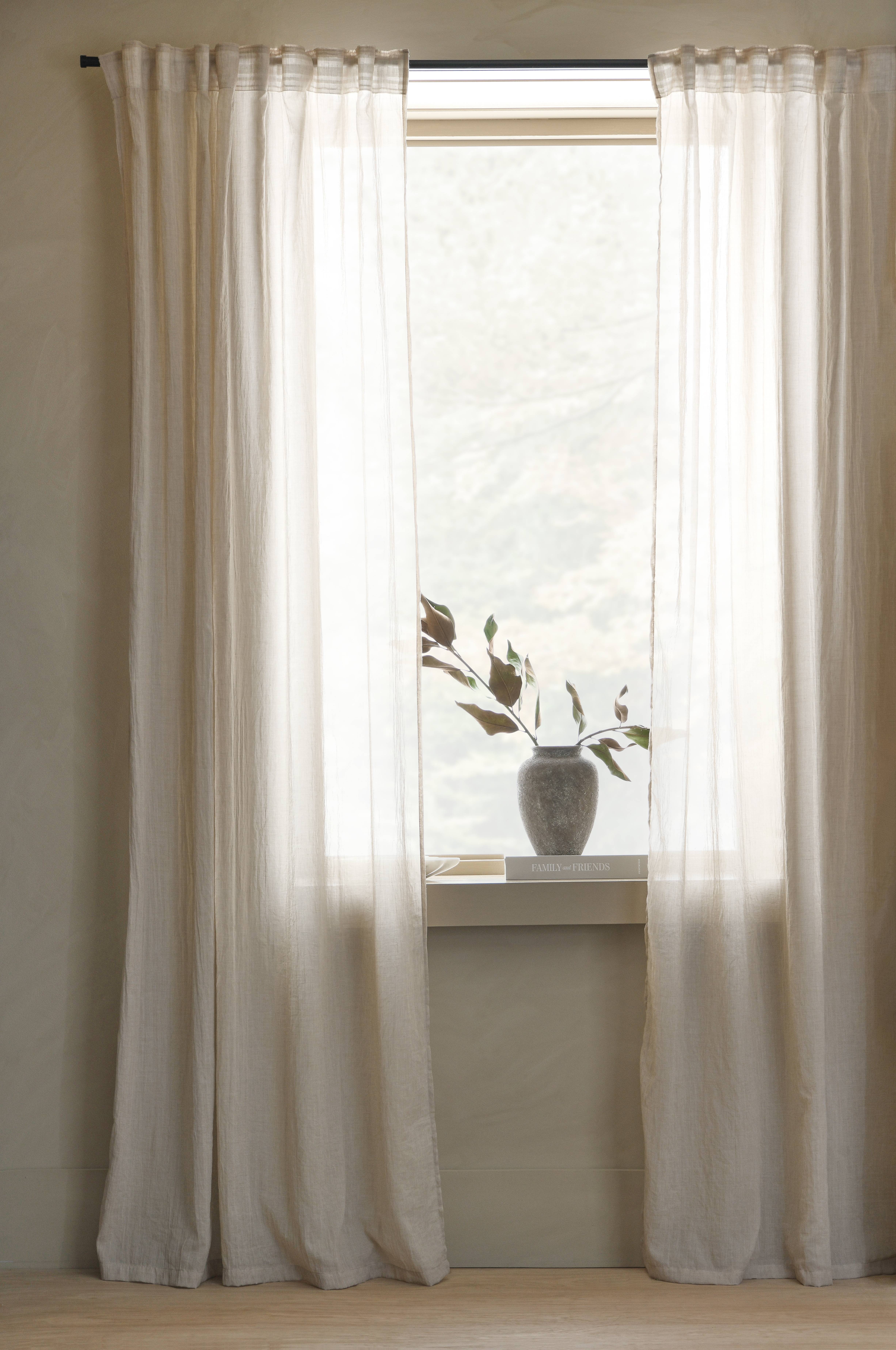 Två multibandslängder i tunn, halvtransparent voile. Multibanden gör att du antingen kan hänga gardinerna direkt på en gardinstång genom de gömda hällorna eller använda ringar, nålkrokar eller fingerkrokar. Snören i rynkbanden gör att du lätt kan skapa jämna, fina veck. Bredd 130 cm.