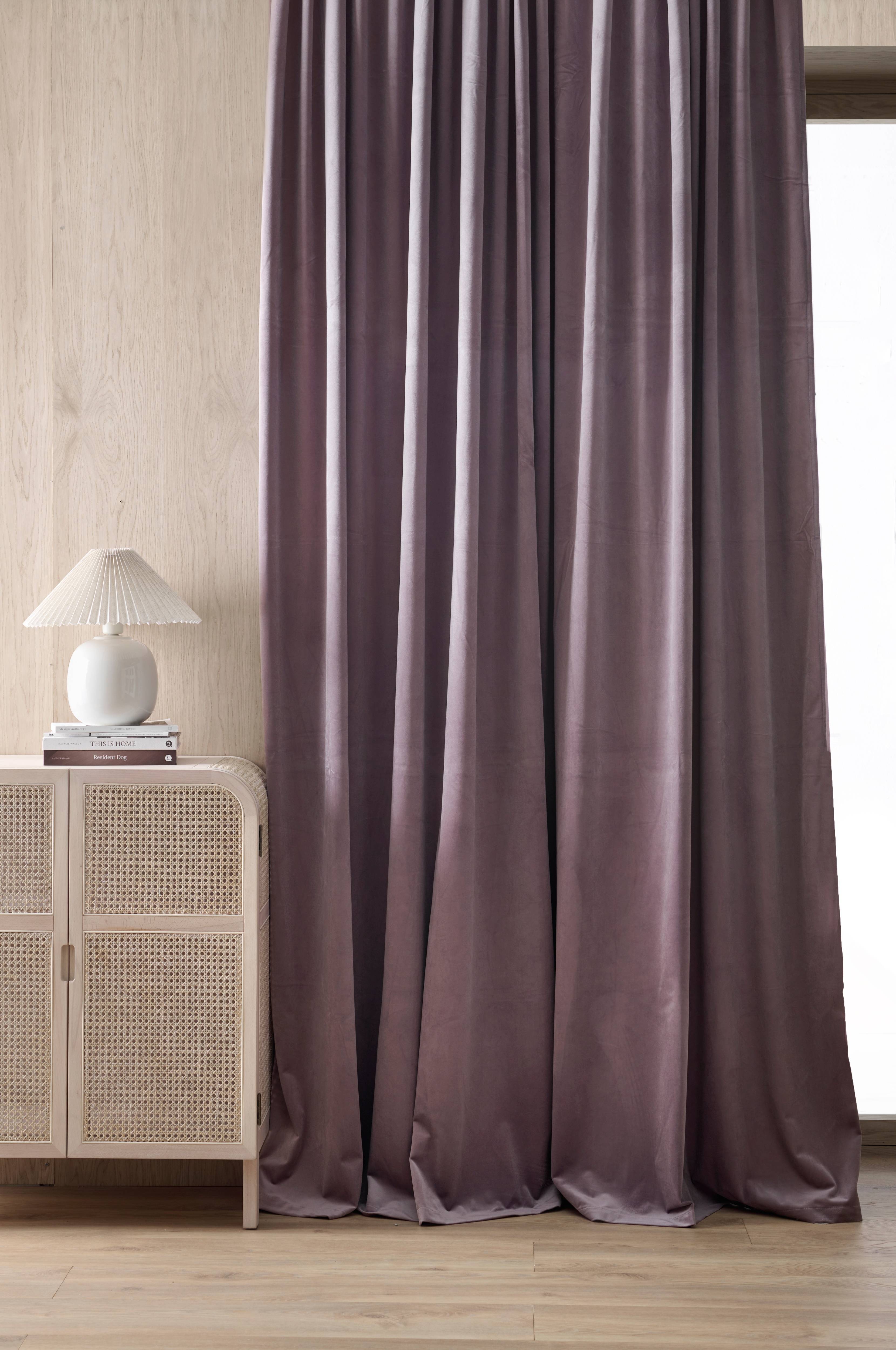 Multibandslängd i sammet som är 290 cm bred, vilket gör att den passar både i vanliga fönster och i stora fönsterpartier. Multibanden gör att du antingen kan hänga gardinerna direkt på en gardinstång genom de gömda hällorna eller använda ringar, nålkrokar eller fingerkrokar. Den här gardinen passar också bra att använda med en gardinskena. Snören i rynkbandet gör att du lätt kan skapa jämna, fina veck. Stl 290x300 cm. Säljs i 1 längd/förp.