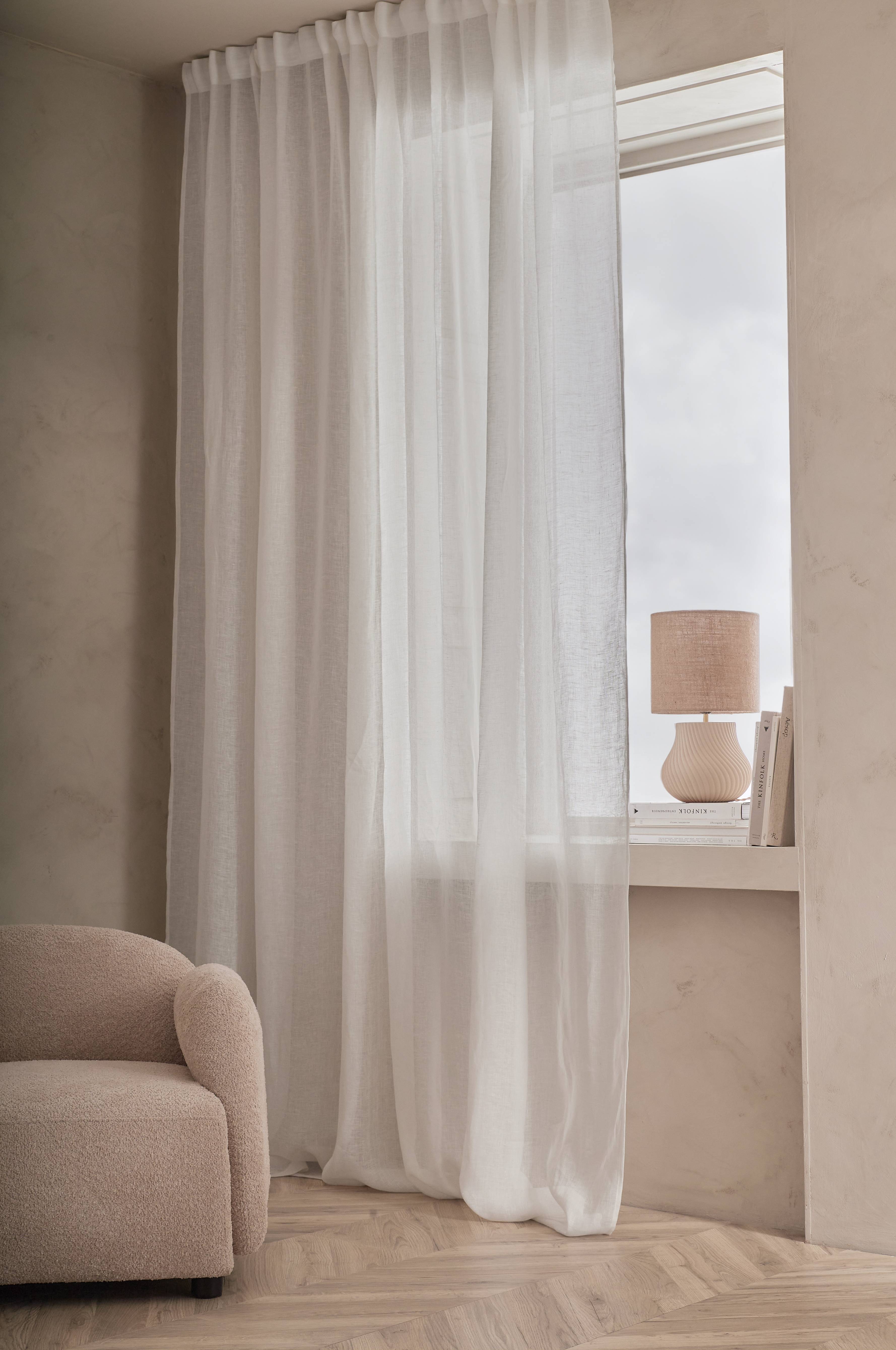 Extra bred multibandslängd av glesvävt lin. Mjuk, skir kvalitet med melangeeffekt. Multibandet gör att du antingen kan hänga gardinen direkt på en gardinstång genom de gömda hällorna eller använda ringar, nålkrokar eller fingerkrokar. Snören i rynkbandet gör att du lätt kan skapa jämna, fina veck. Säljs i 1-styck.