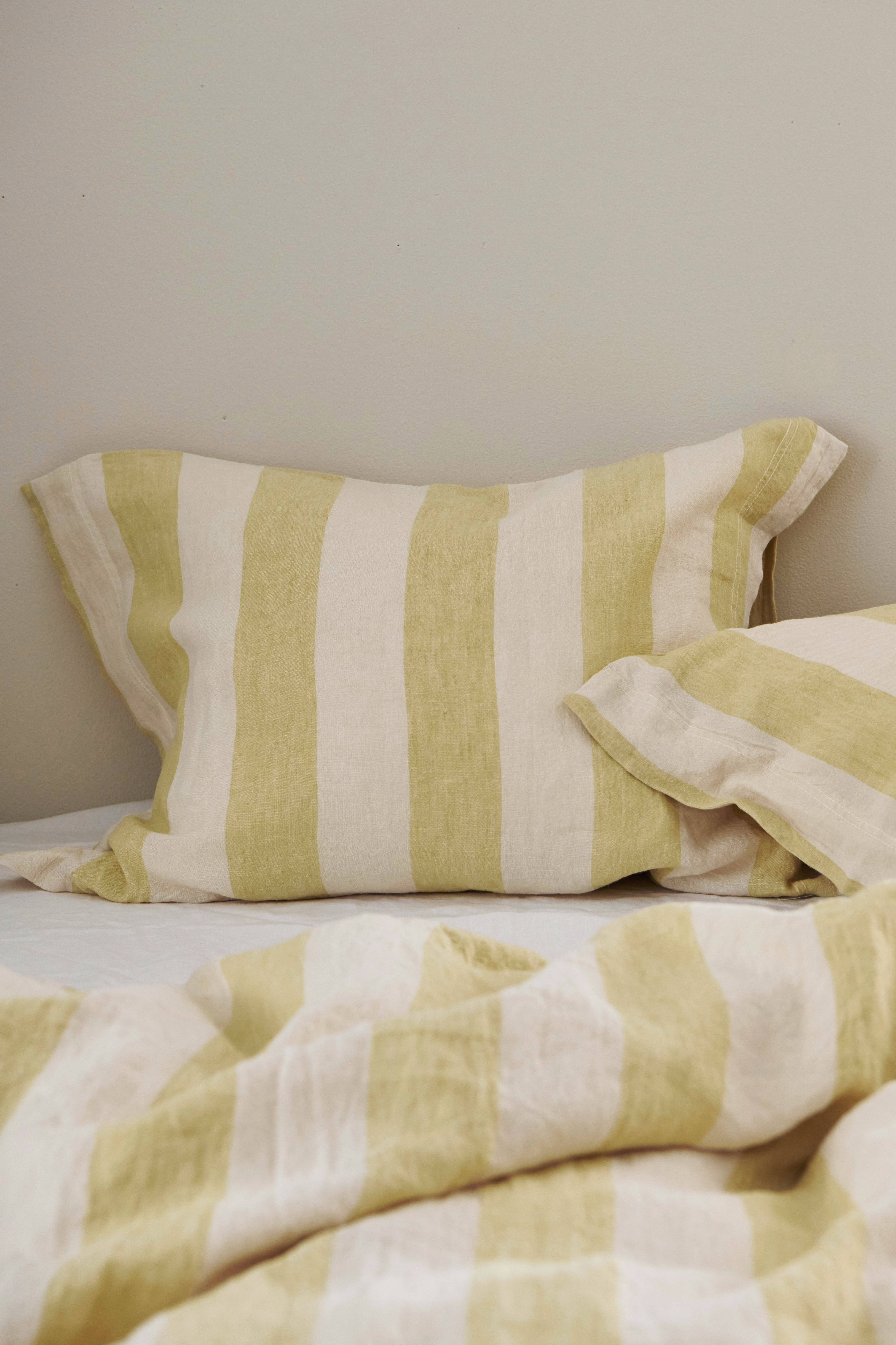 Örngott i tvättad linnekvalitet av franskt lin med garnfärgade ränder. Stl 50x60 cm + 5 cm vinge på kortsidorna.