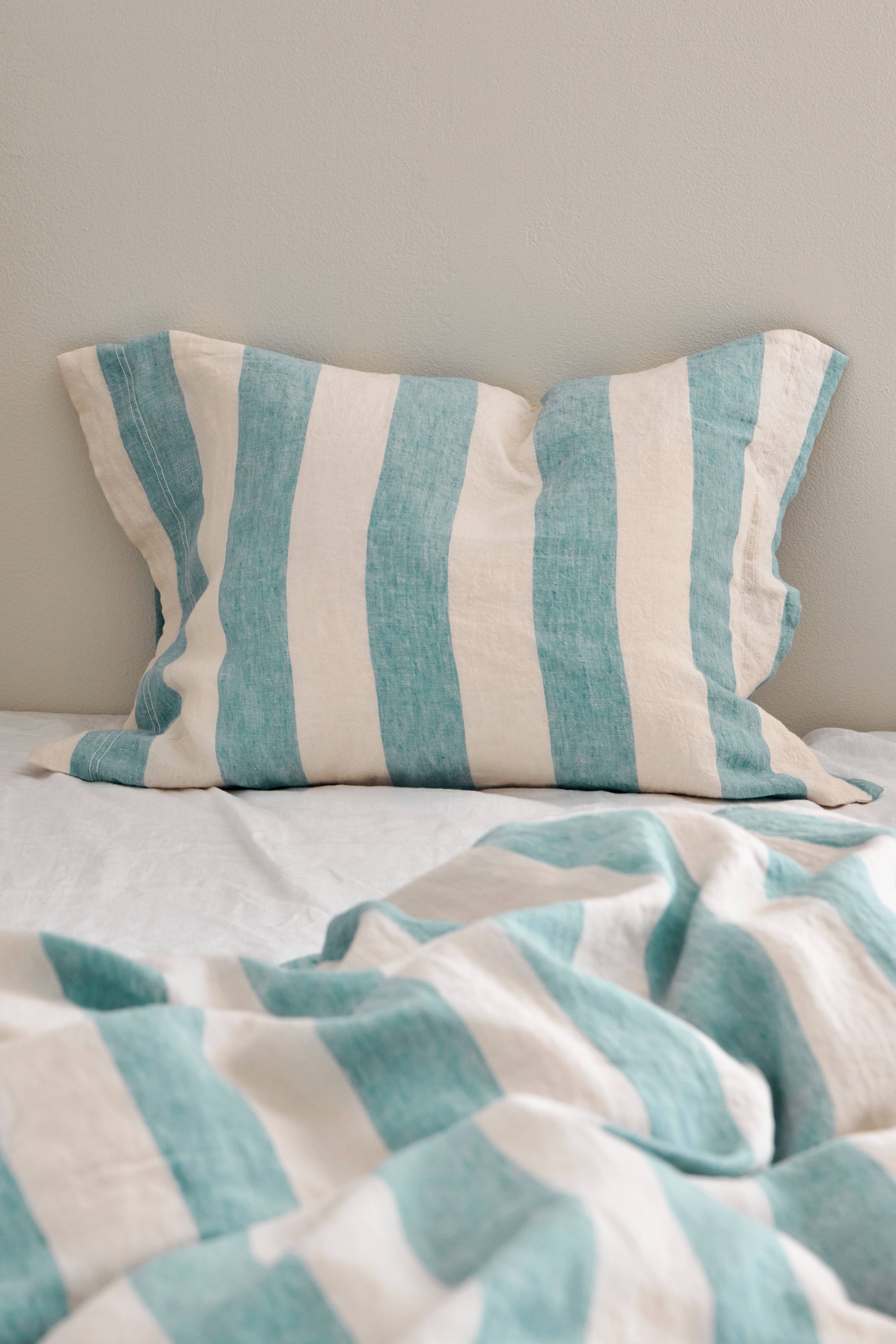 Örngott i tvättad linnekvalitet av franskt lin med garnfärgade ränder. Stl 50x60 cm + 5 cm vinge på kortsidorna.