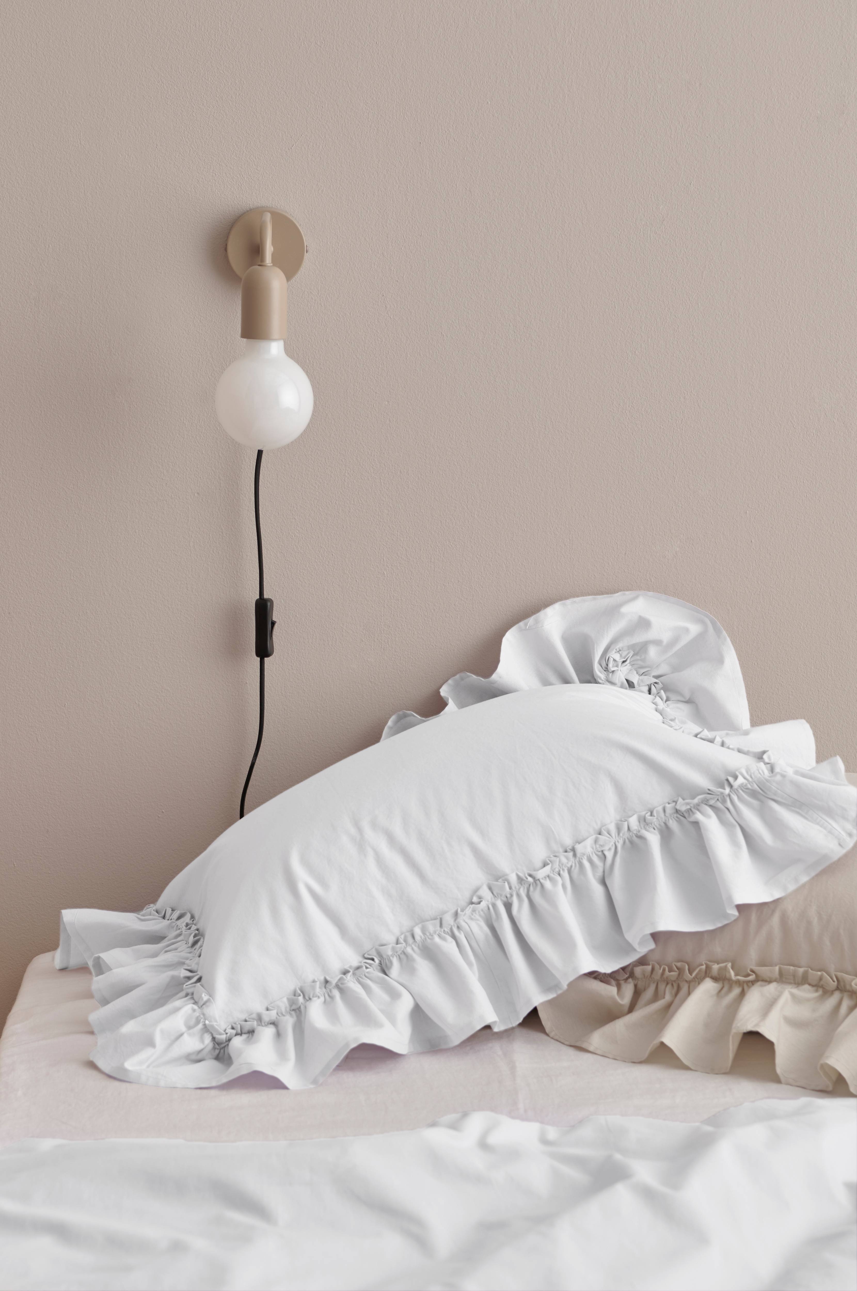 Örngott i skön kvalitet av mjuktvättad, ekologisk bomull. Trådtäthet 144 tc. 13 cm rynkad volang runt om.