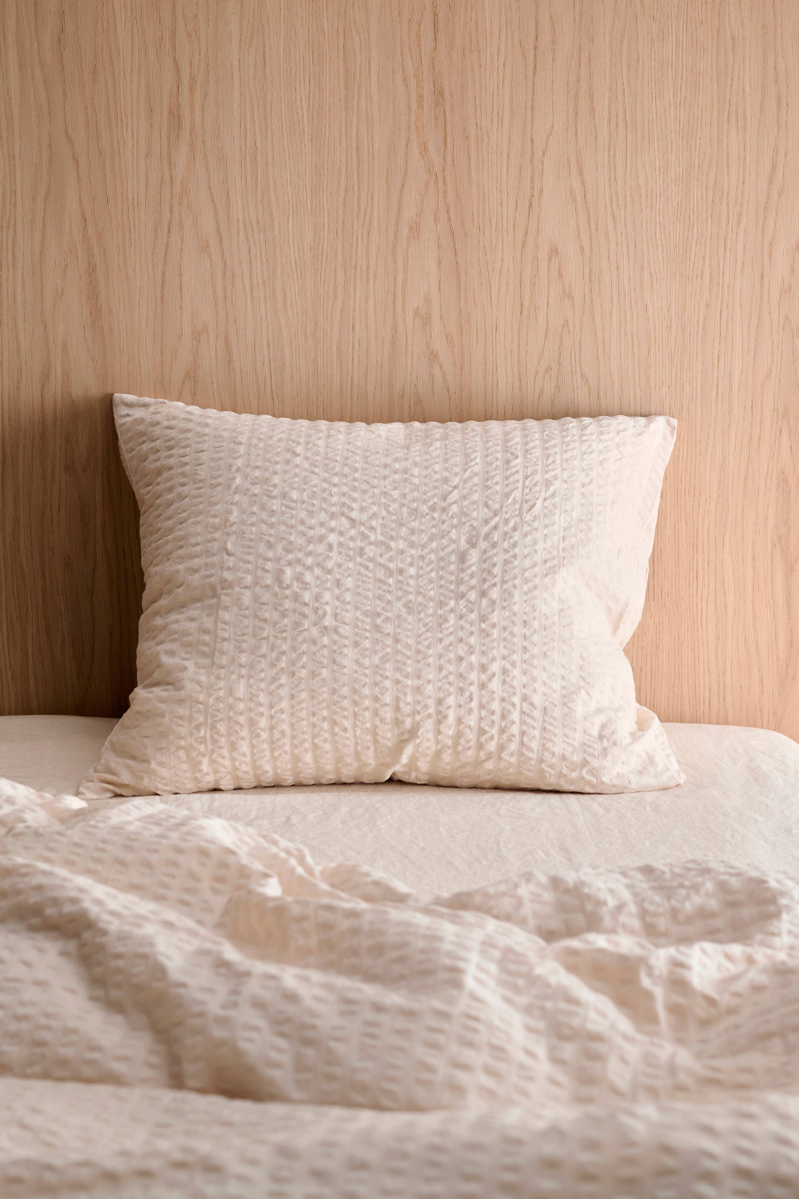Örngott i bäckebölja (seersucker) av kammad, ekologisk bomull. Levereras i tygbag i samma kvalitet. Stl 50x60 cm.