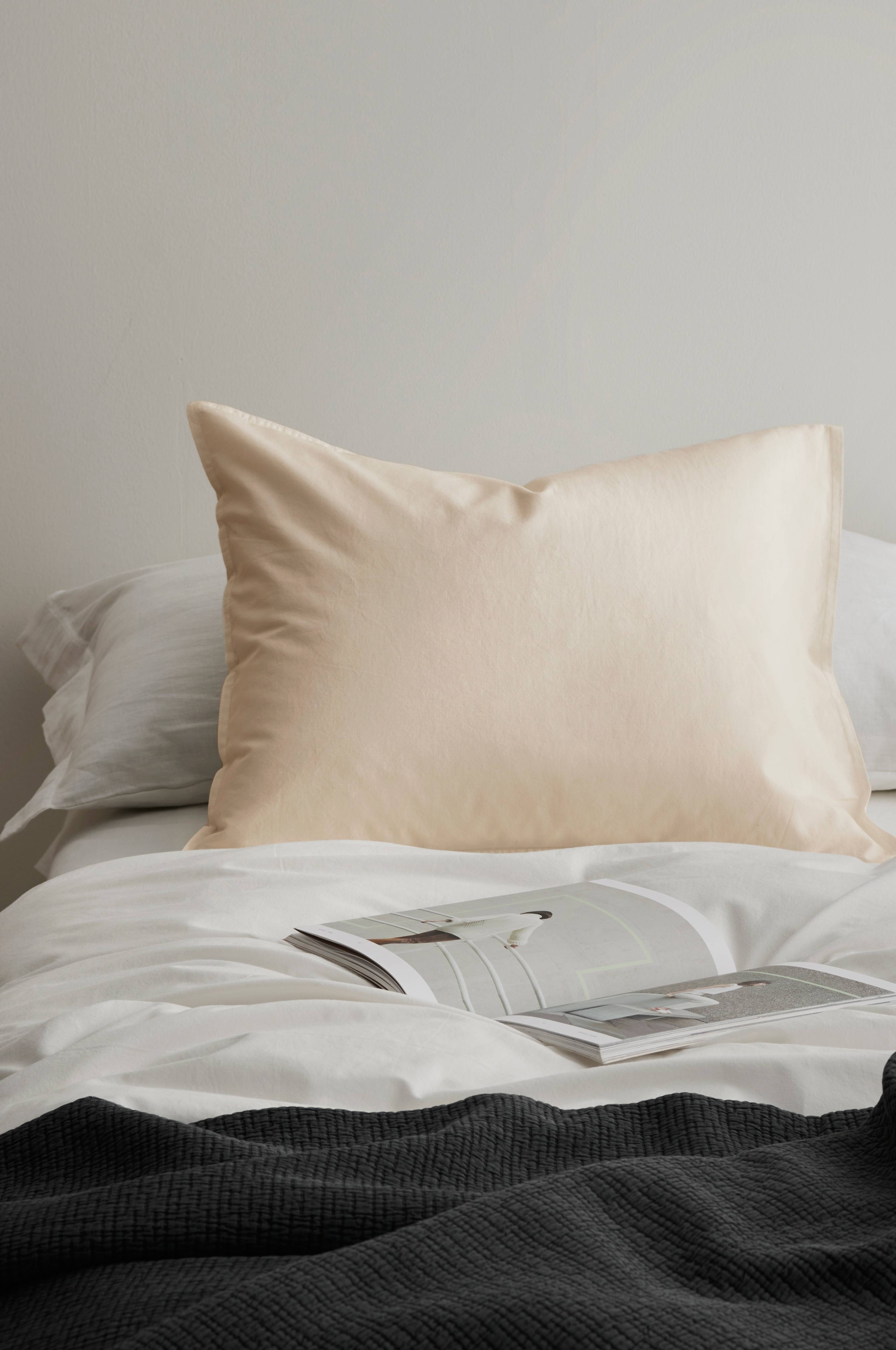 Örngott i vintagetvättad ekologisk bomull. Trådtäthet 144 TC. Dubbla jeanssömmar runt om. Levereras i tygpåse i samma kvalitet med dragskoband. Stl 50x60 cm.