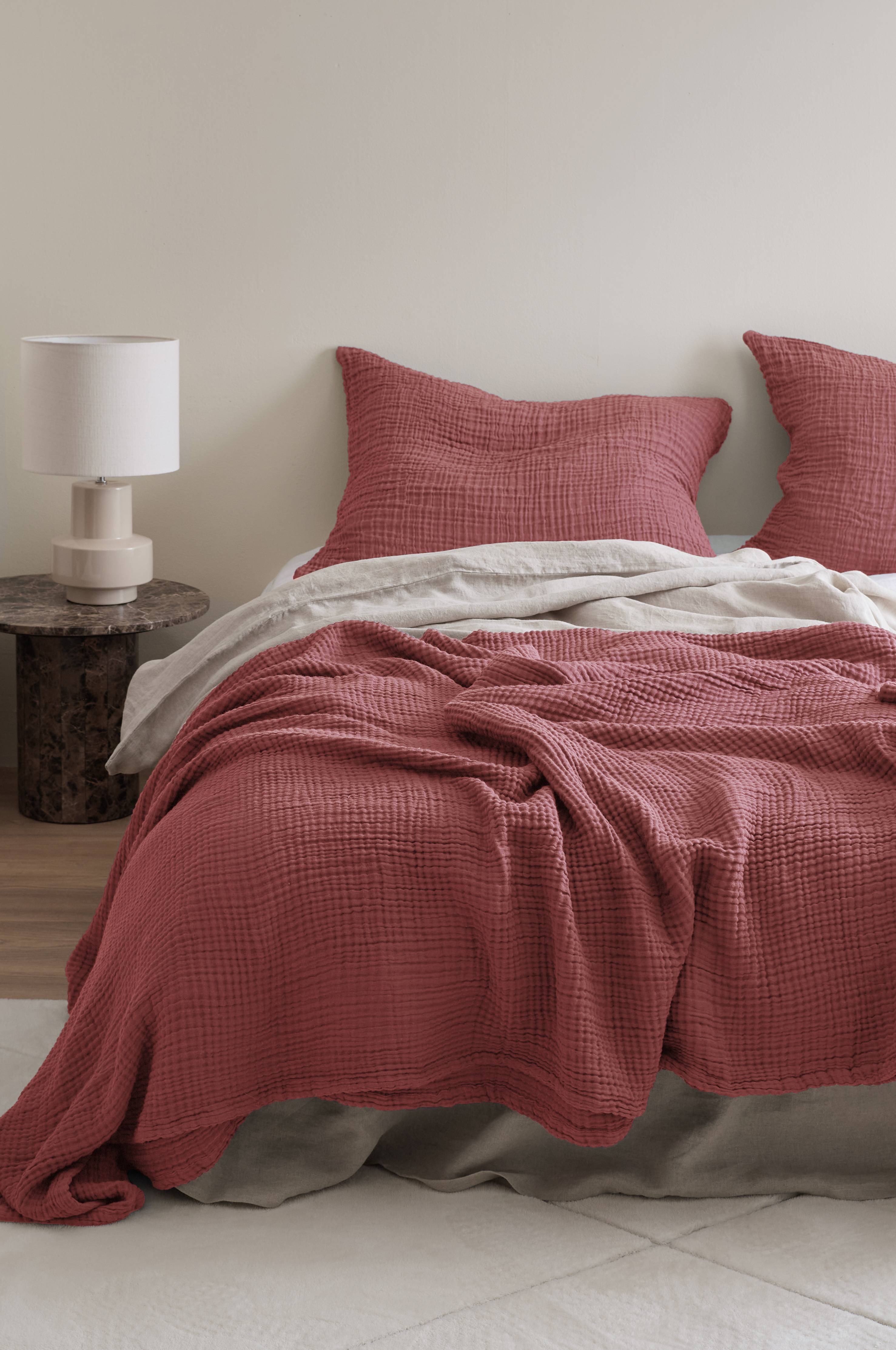 Överkast av ekologisk bomullsmuslin i 4 lager. Fållade kanter. Levereras rullat.