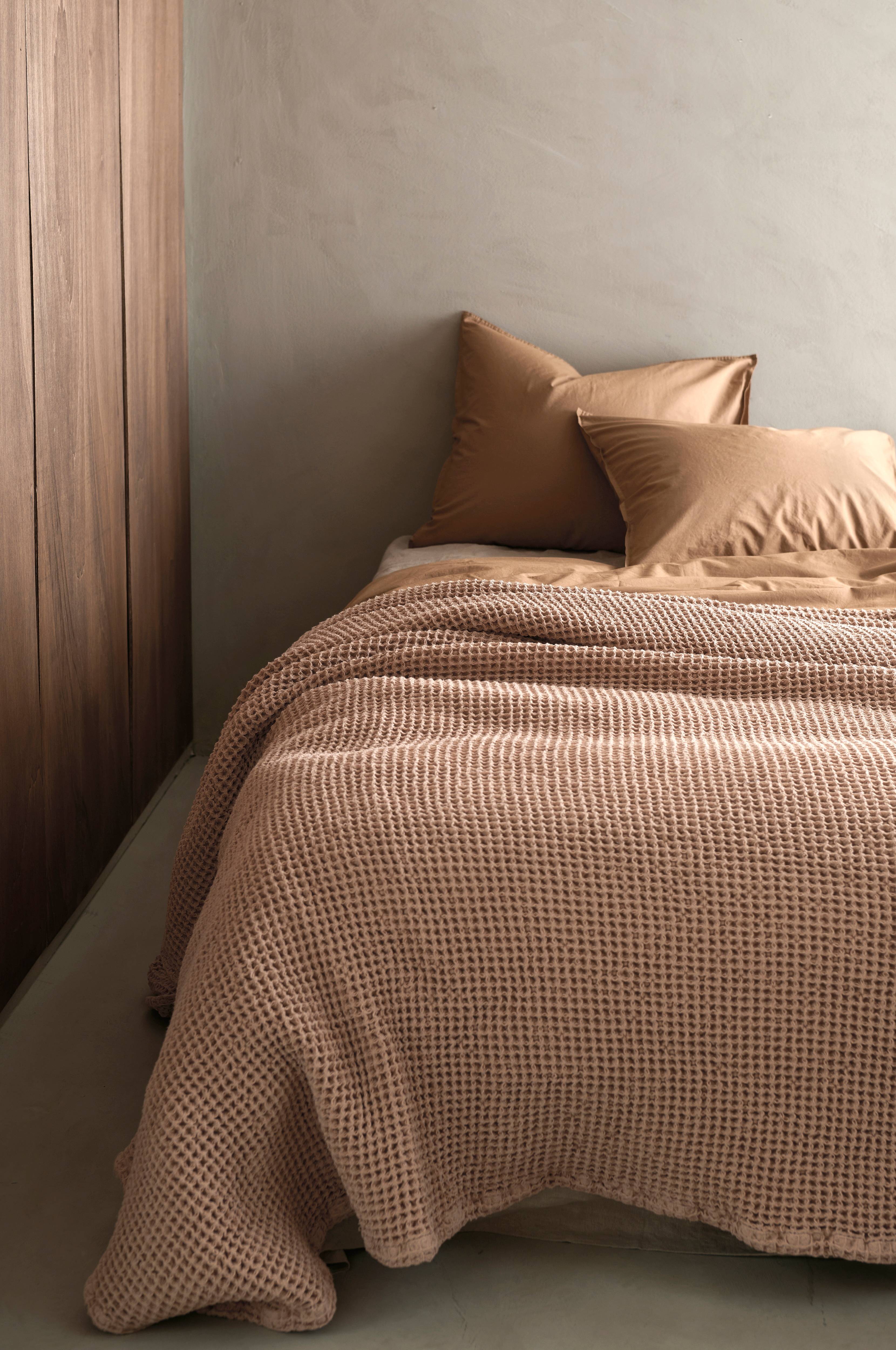 Överkast i tvättad bomull med kraftigt våffelmönster.