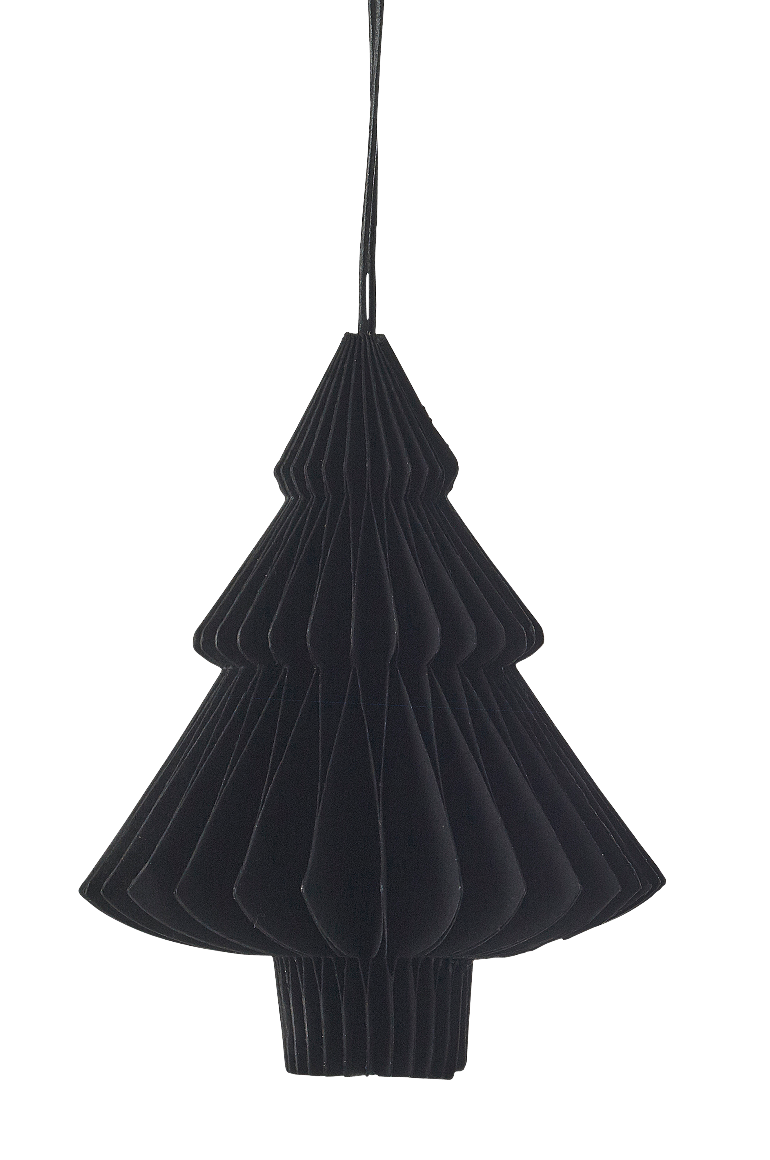 Dekoration av papper med hänge av läder (längd 9 cm). Höjd 9,5 cm, Ø 7 cm.