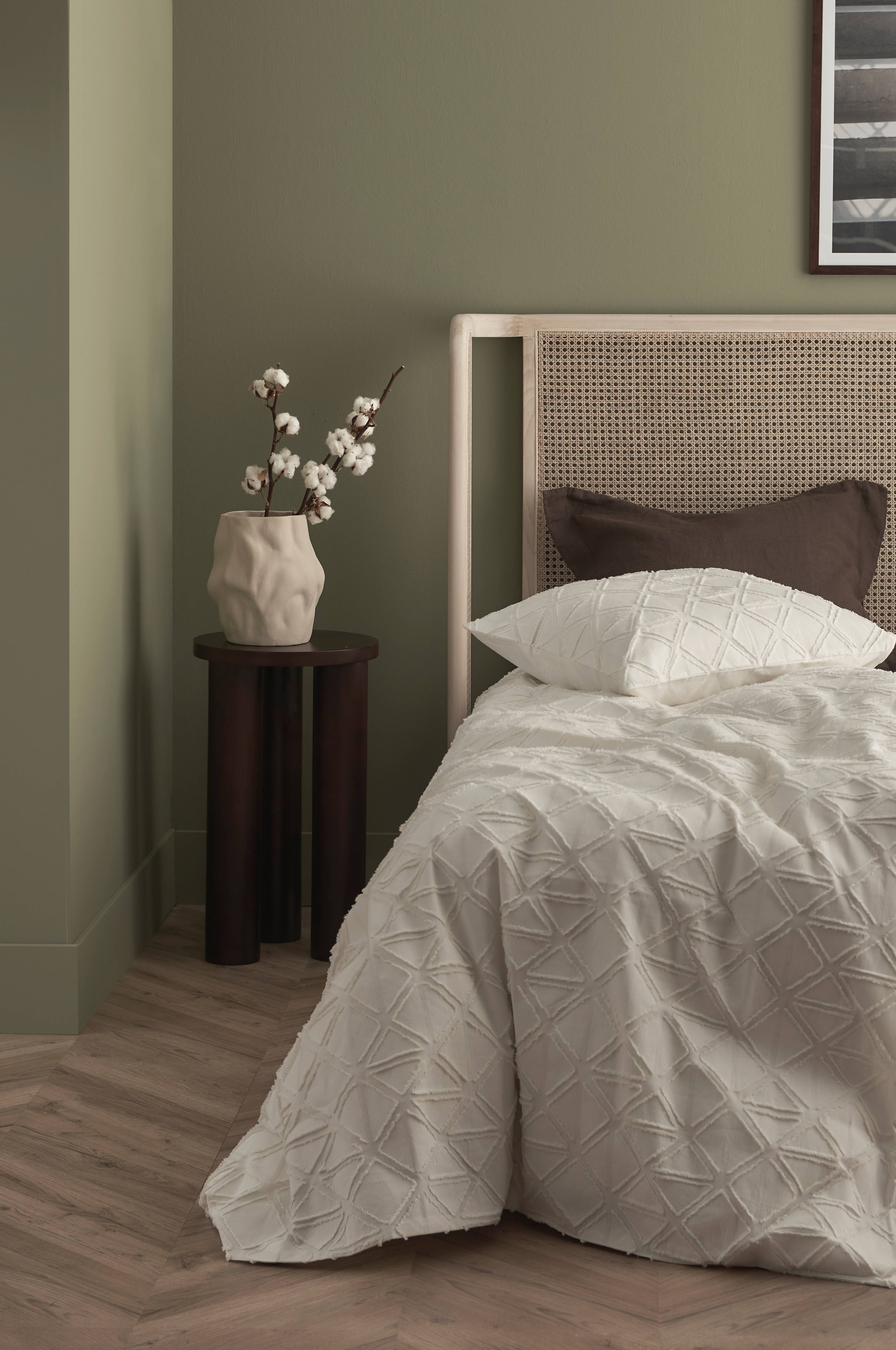 Påslakanset av ekologisk bomull i tvättad kvalitet. Framsidan på påslakan och örngott har ett jacquardvävt mönster med klippta kanter. Baksidan är i slät bomull. Levereras i en bag i samma kvalitet med dragskoöppning.