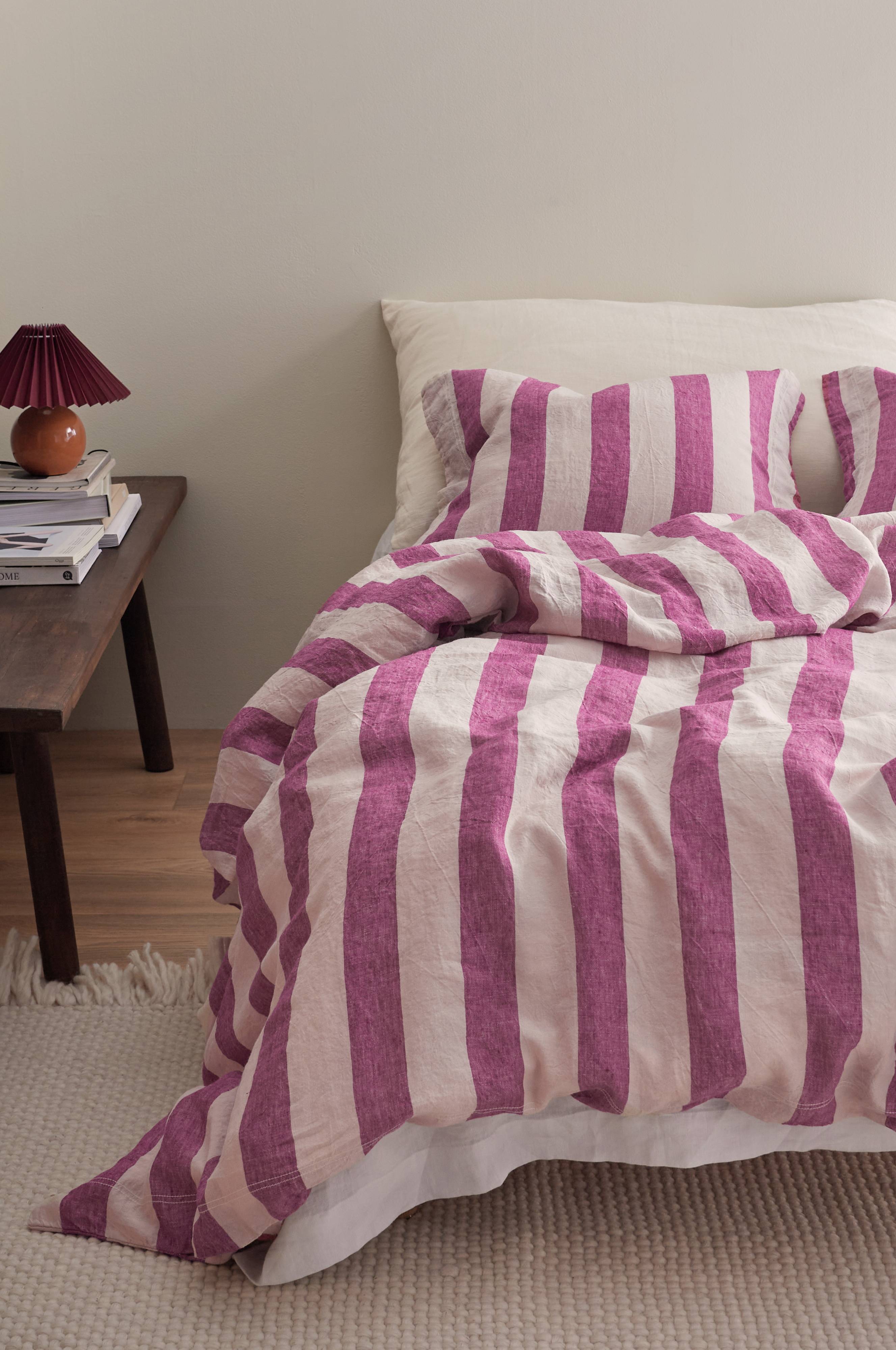 Ellos Home Påslakanset Candice Block Stripe i tvättat lin, 2 delar