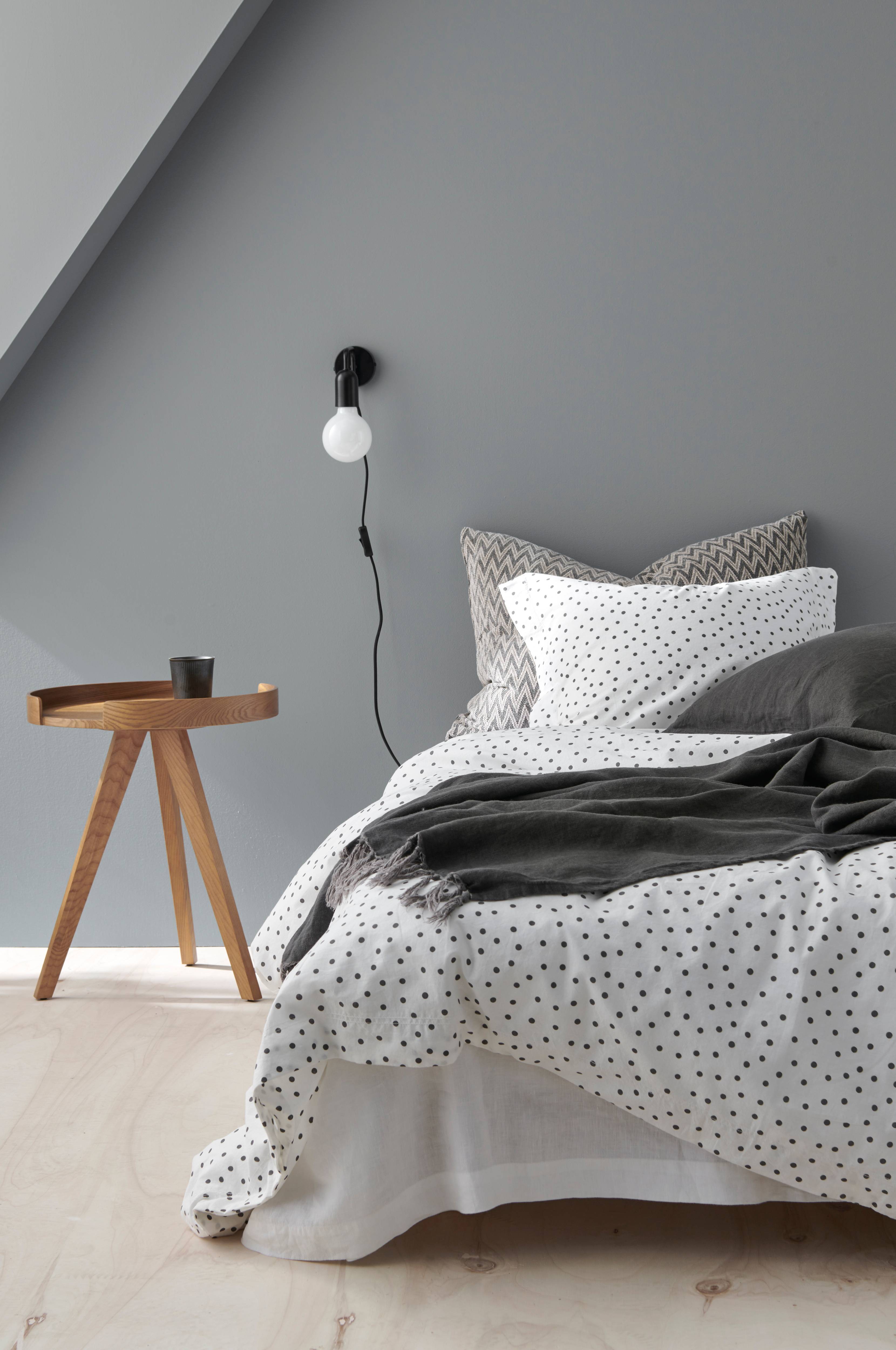 Påslakanset i skön kvalitet av mjuktvättad, ekologisk bomull med tryckt prickmönster. Dubbla jeanssömmar runt om. Trådtäthet 144 tc. Tryckknappar i nederkant på påslakanet.