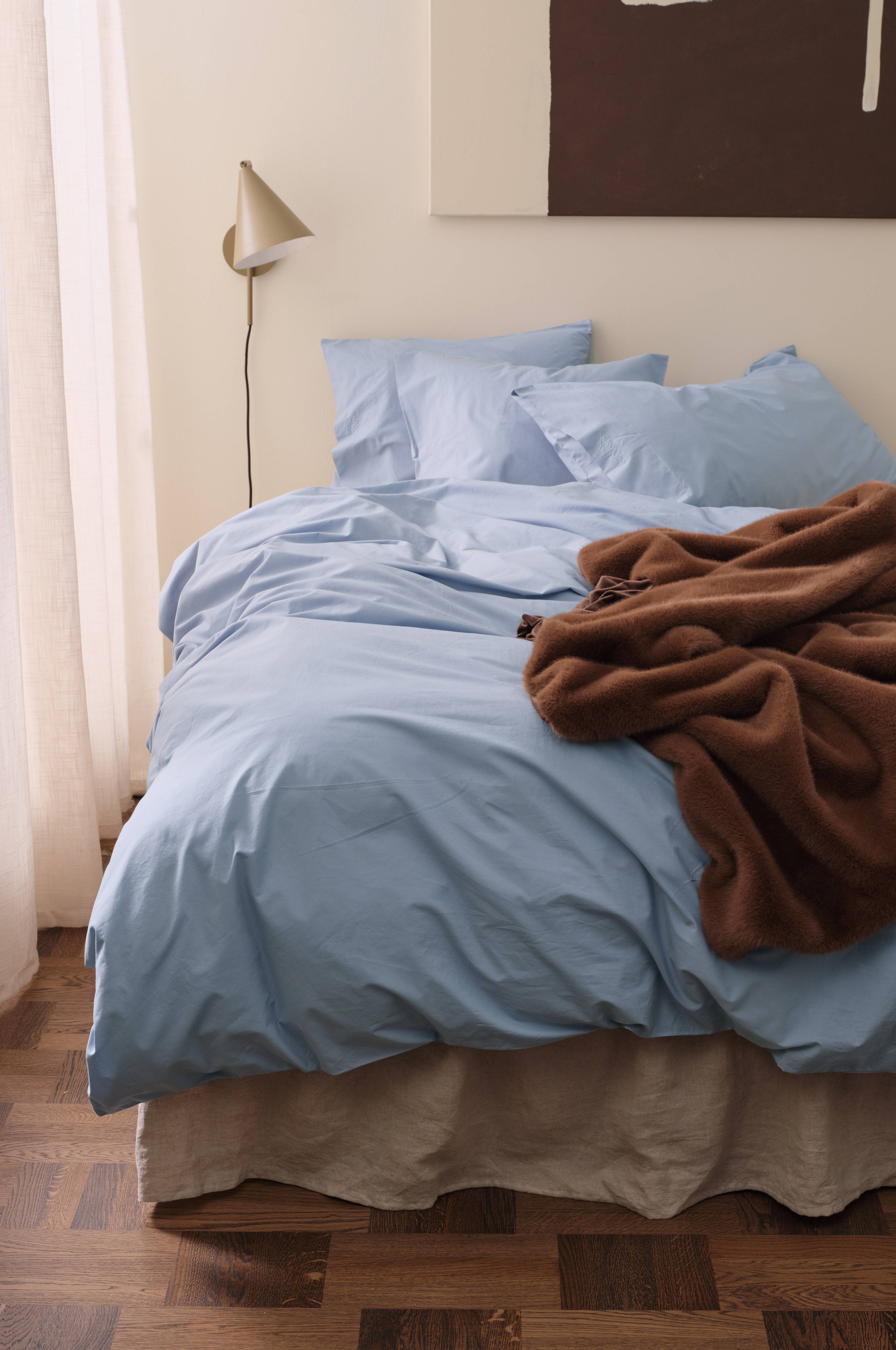 • Påslakanset i ekologisk bomullspercale • Tryckknappar i nederkanten på påslakanet • Både påslakan och örngott har dekorativa sömmar på en sida • Broderi i nederkanten på örngottet • Percale är en lyxig, tätvävd kvalitet i finkammad bomull med slät yta och sval, mjuk känsla • Inga handhål • Trådtäthet: 180 TC • 2-dels set: 1 påslakan 150x210 cm (till enkeltäcke) med 1 örngott 50x60 cm 3-dels set: 1 påslakan 240x220 cm (till dubbeltäcke) med 2 örngott 50x60 cm