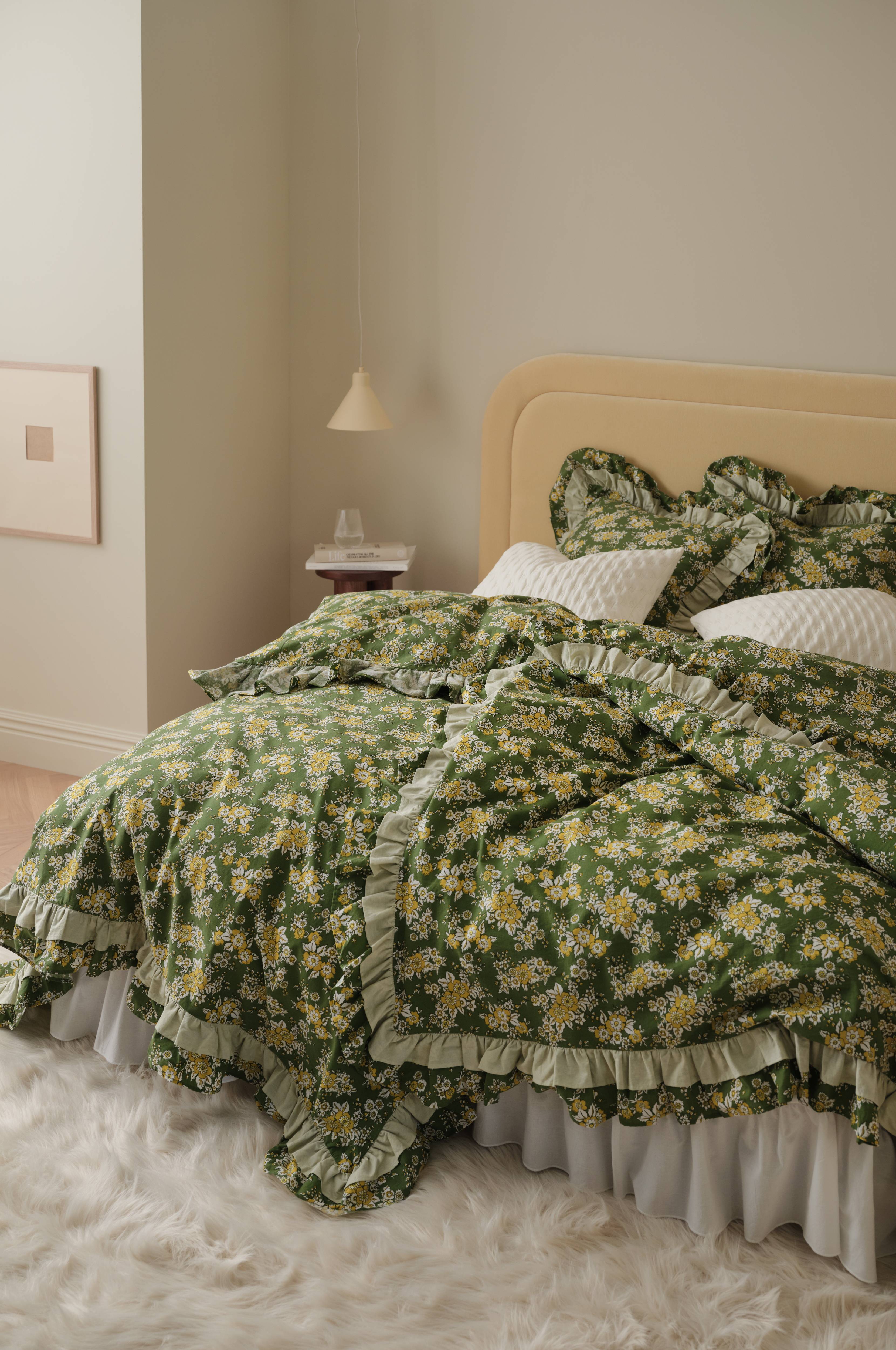 • Påslakanset i tvättad bomull med tryckt mönster• Dubbel volang runt om• Tryckknappar i nederkanten på påslakanet• Trådtäthet: 144 TC• 2-dels set: 1 påslakan 150x210 cm (till enkeltäcke) med 1 örngott 50x60 cm