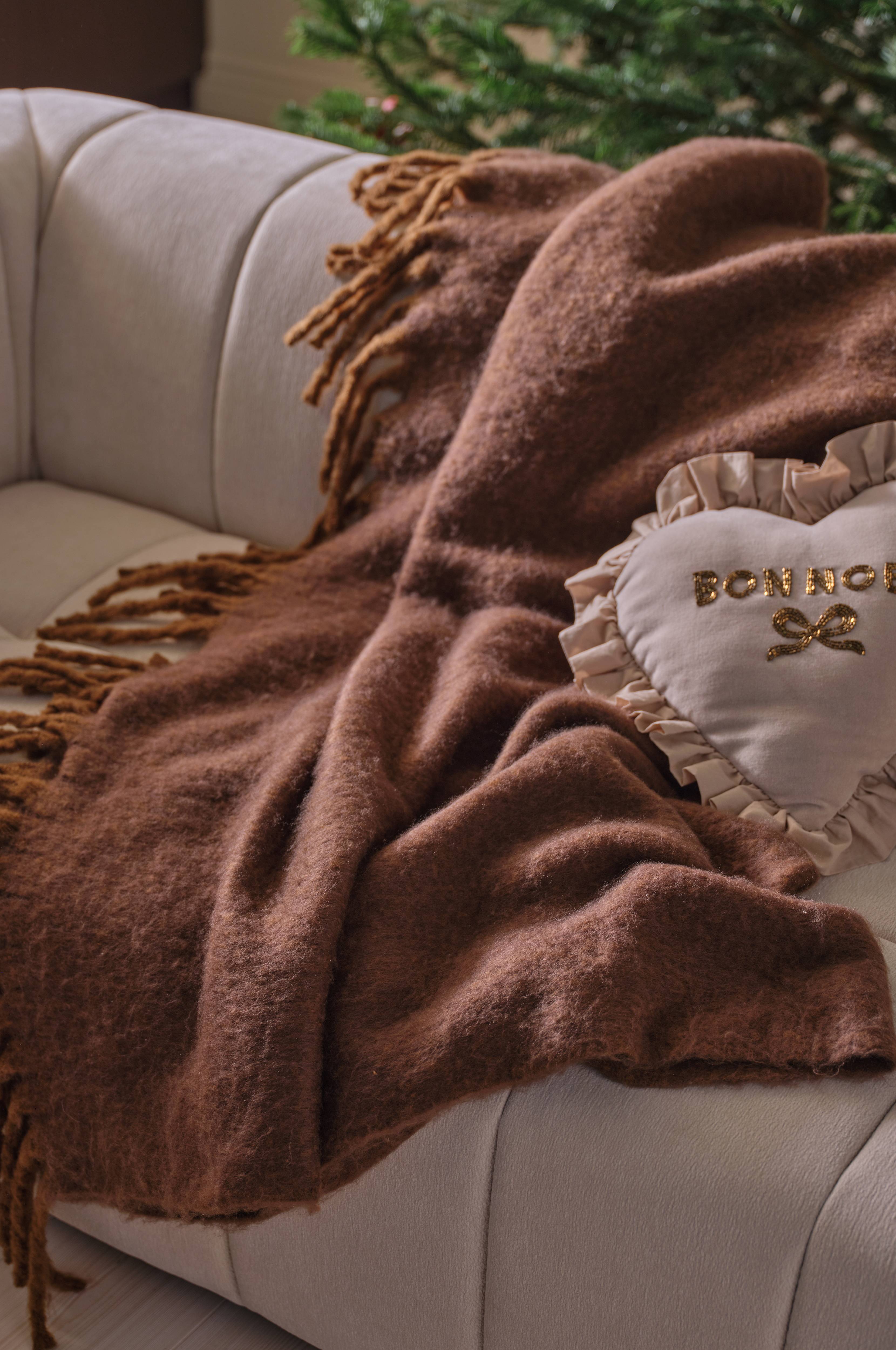 • Stickad, melerad pläd • Garnfärgade rutor • Mjuk och skön kvalitet med mohairkänsla • Fransar på kortsidorna • Produkten är certifierad enligt STANDARD 100 by OEKO-TEX®. Certifieringen garanterar att produkten är testad och fri från ämnen som kan vara skadliga för hälsan och miljön. Licensnummer & testinstitut: 09.HCN.69673 HOHENSTEIN HTTI