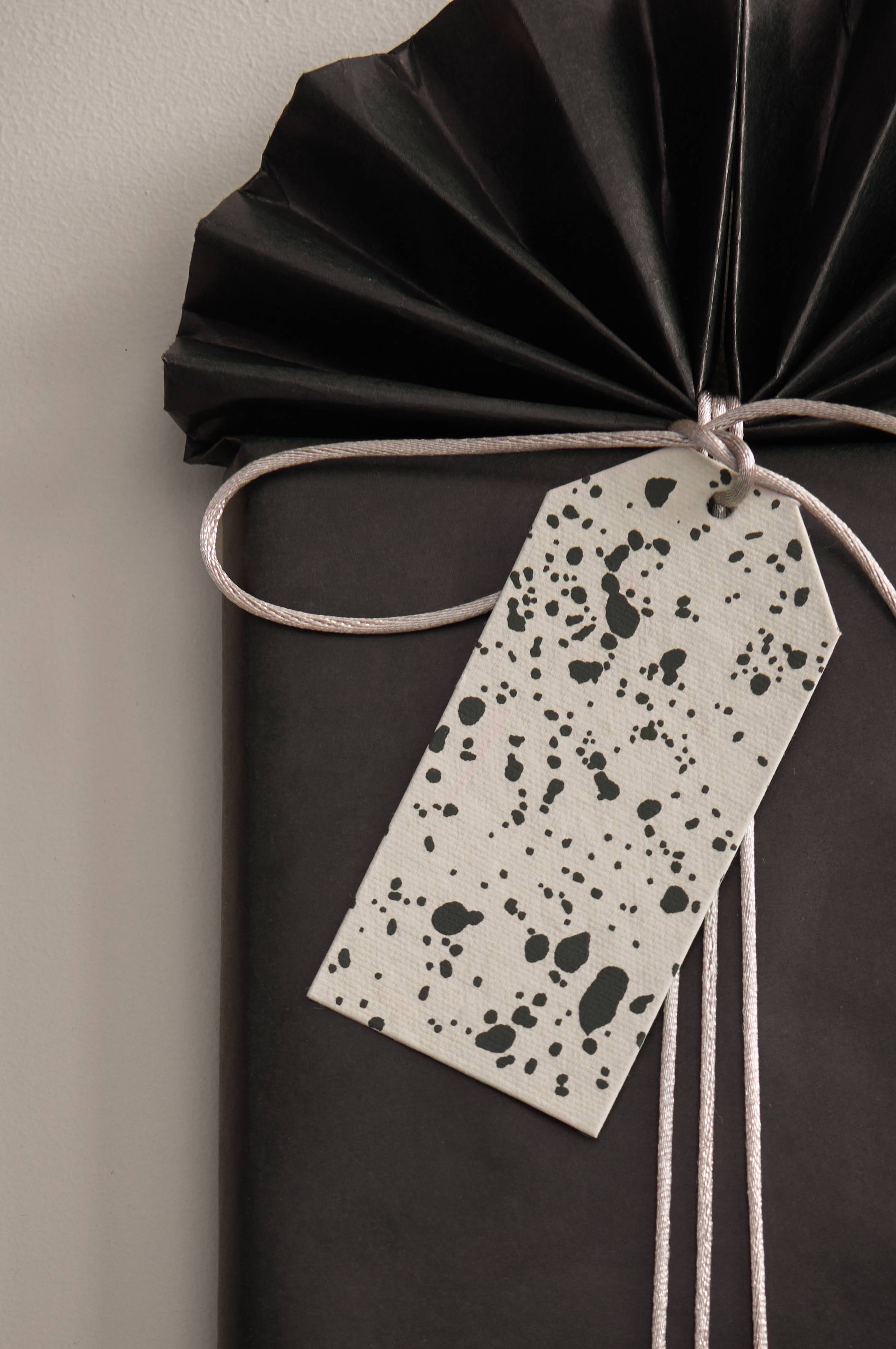 Presentetiketter i 10-pack med mönstrad framsida och tom baksida. Etiketterna är handgjorda i återvunnet papper. Stl 10x5 cm eller 12x3,2 cm eller runda, diameter 7 cm.