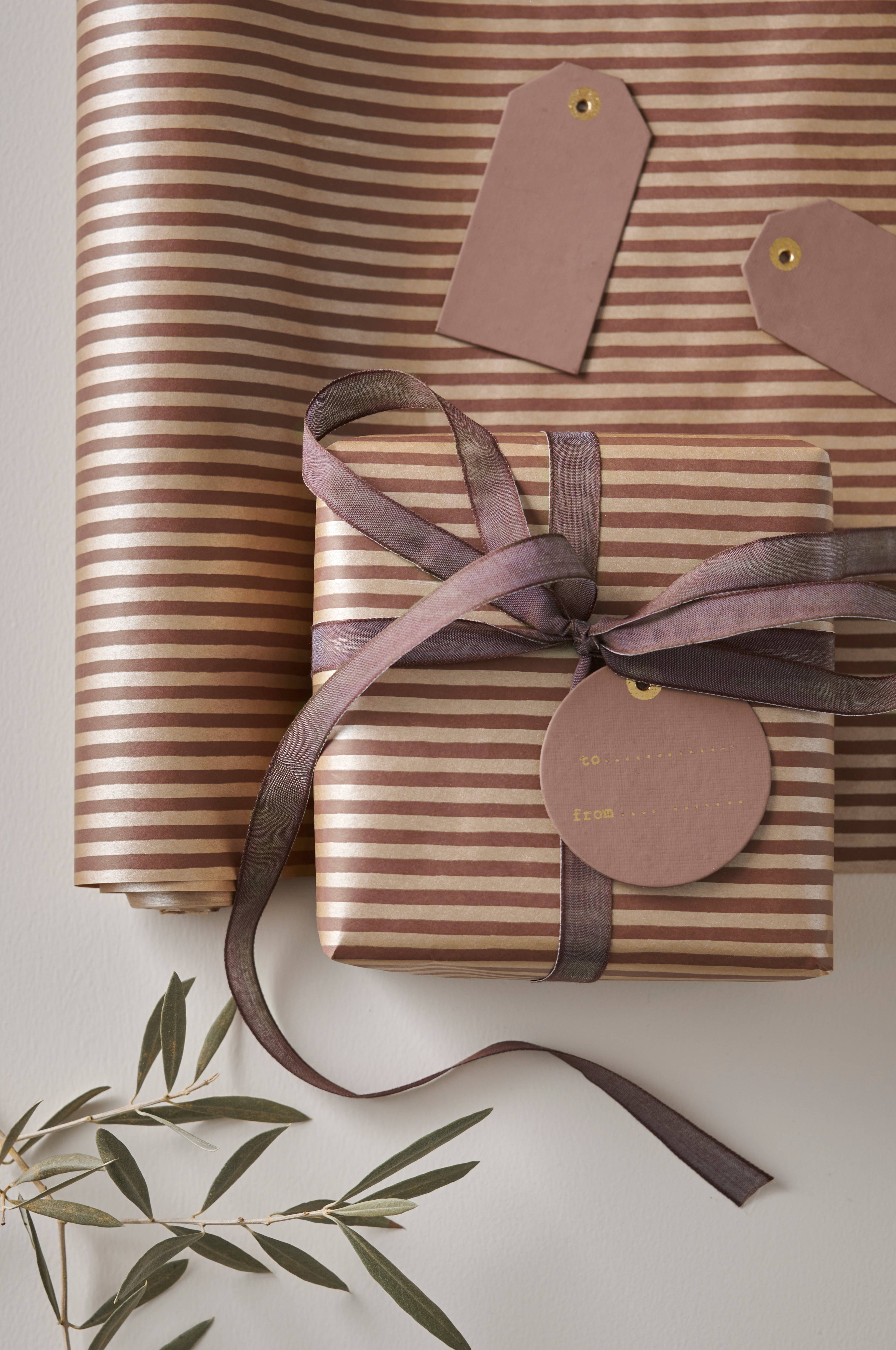 Kraftfullt fint papper. Förvandlas till fina inslagna presenter. Kan också köpa band i enlighet därmed.