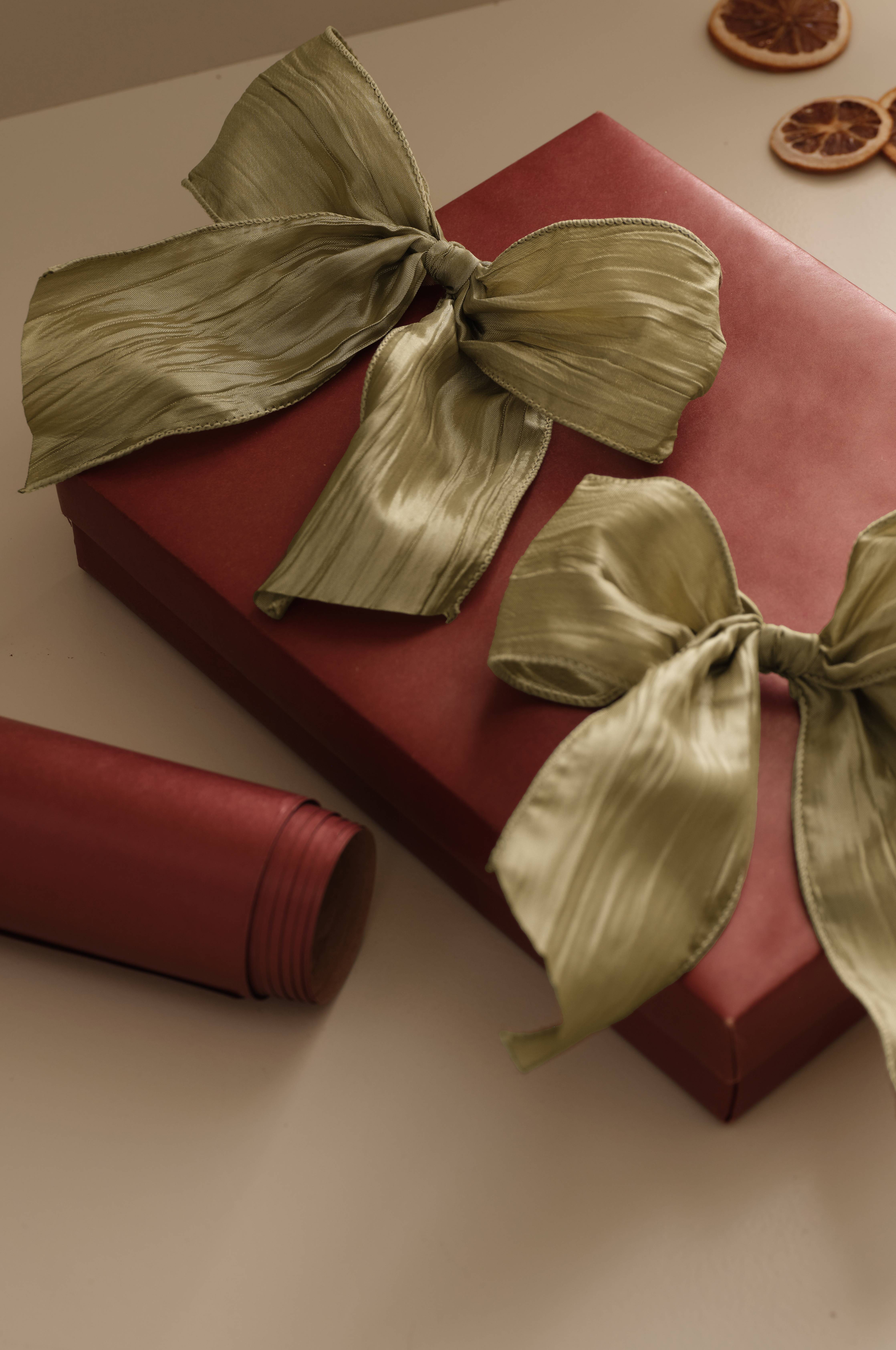 • Två rosetter i krinklat tyg med en metalltråd vid kanterna• Bredd på bandet 7 cm• Metalltråd på baksidan för fastsättning• Stl 20x15 cm