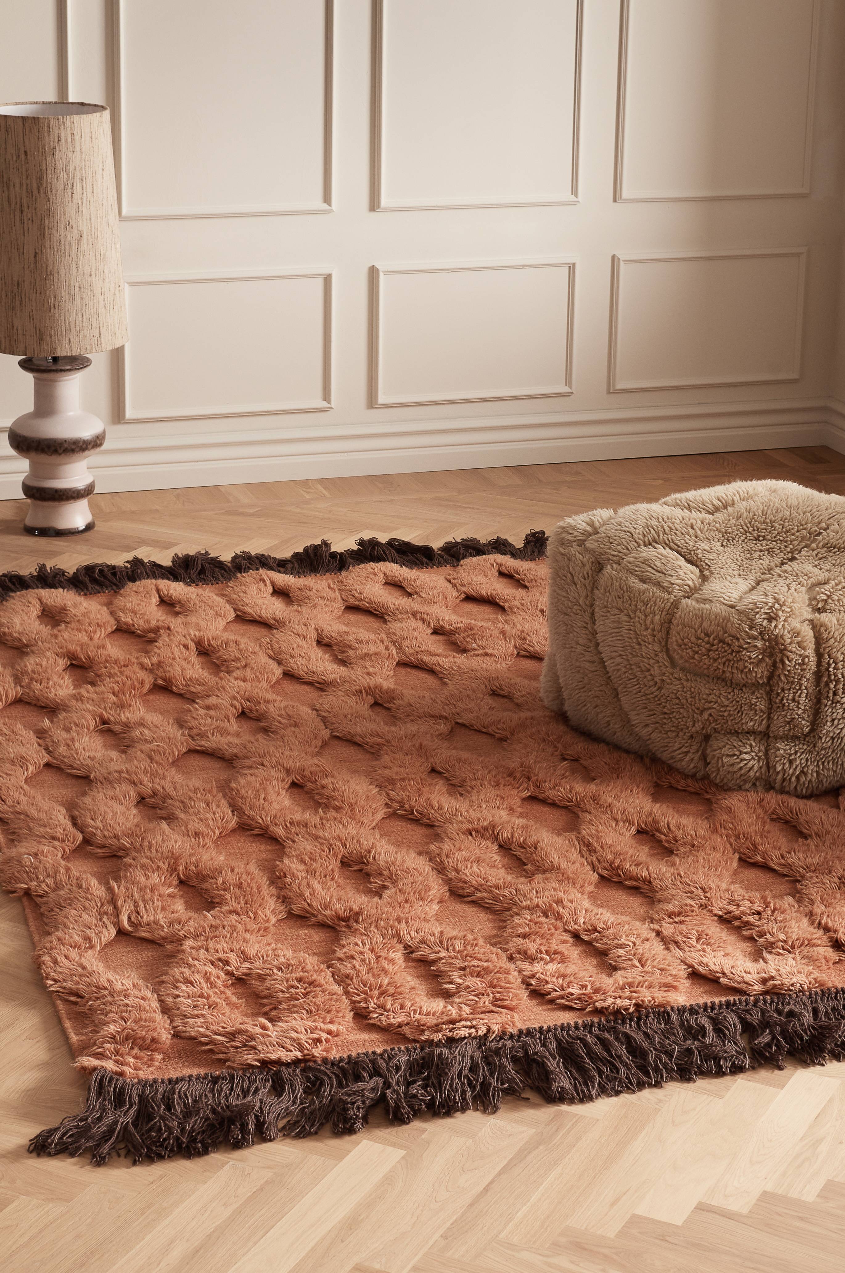 Skötselråd: Ryamattor i ull har på grund av sin långa lugg och ullens fibrer en tendens att i början ge ifrån sig ludd. Detta är en naturlig, normal process för denna typ av matta och vi rekommenderar därför att regelbundet dammsuga den.