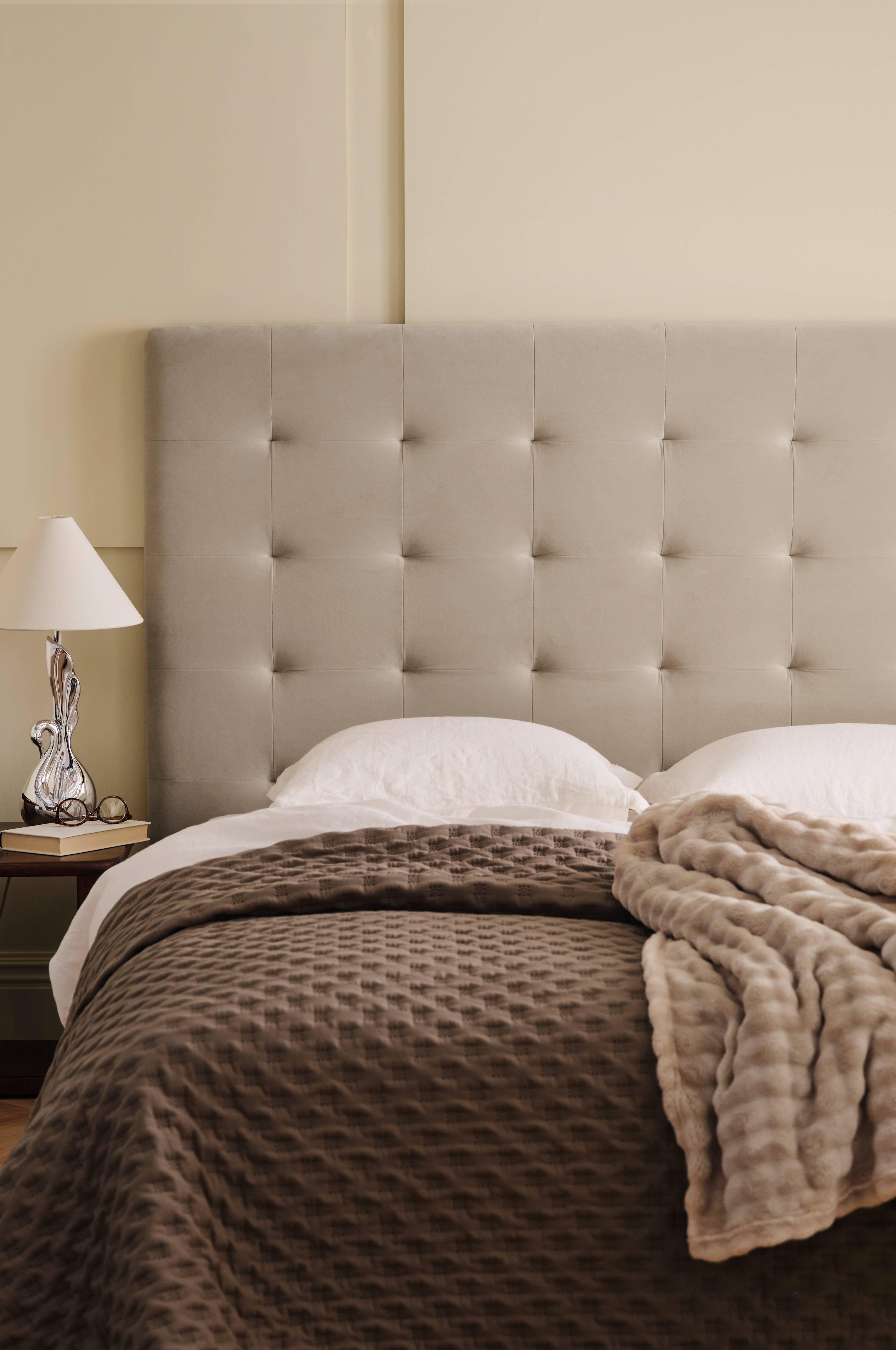 • Sänggavel med klädsel i tuftad sammet• Stomme i plywood och massivt trä• Skumfyllning• Ben i metall• Dekorativa sömmar över hela• Möjligt med väggupphängning