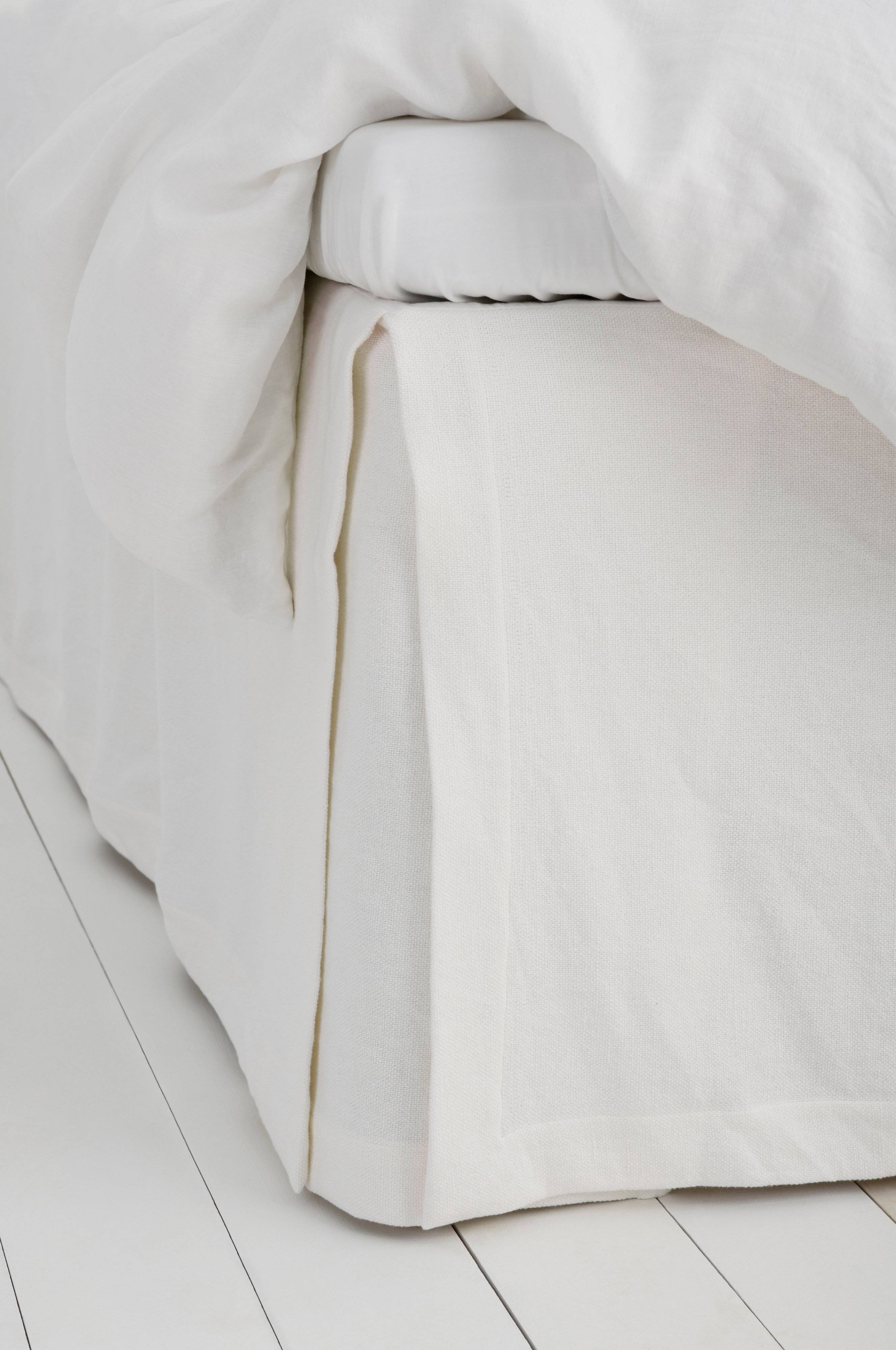 Sängkappa för kontinentalsäng. Nedhäng i kraftig, vävd kvalitet i en mix av lin och bomull med struktur i tyget. Platta i bomull. Kappans höjd 60 cm. Levereras i en quiltad axelremsväska som sedan kan återanvändas.