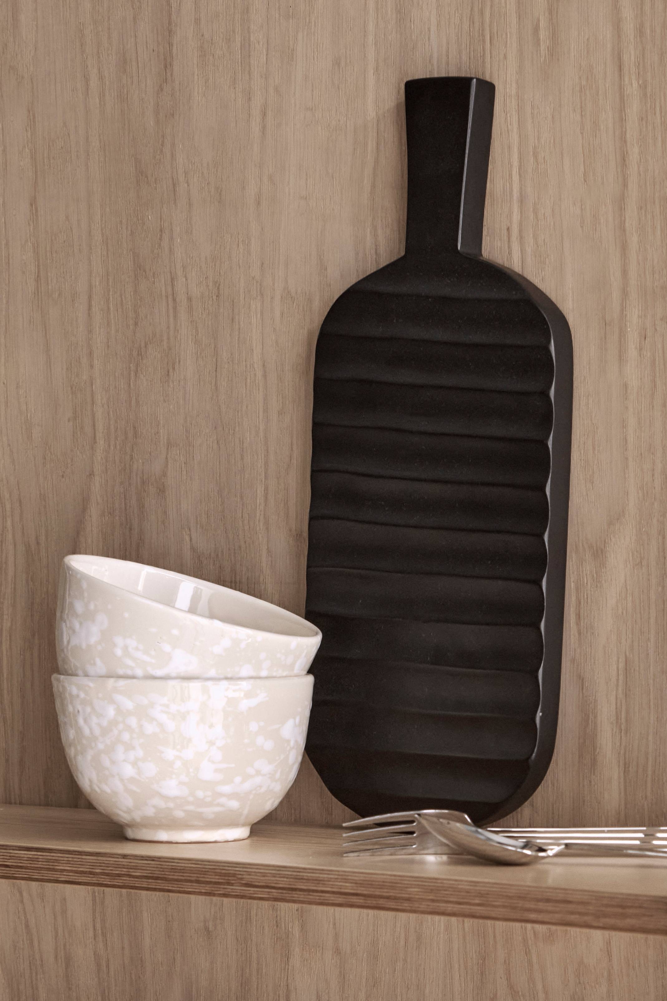 Serveringsbräda / uppläggningsbricka i mangoträ med praktiskt handtag. Karvat mönster på framsidan och slät baksida.