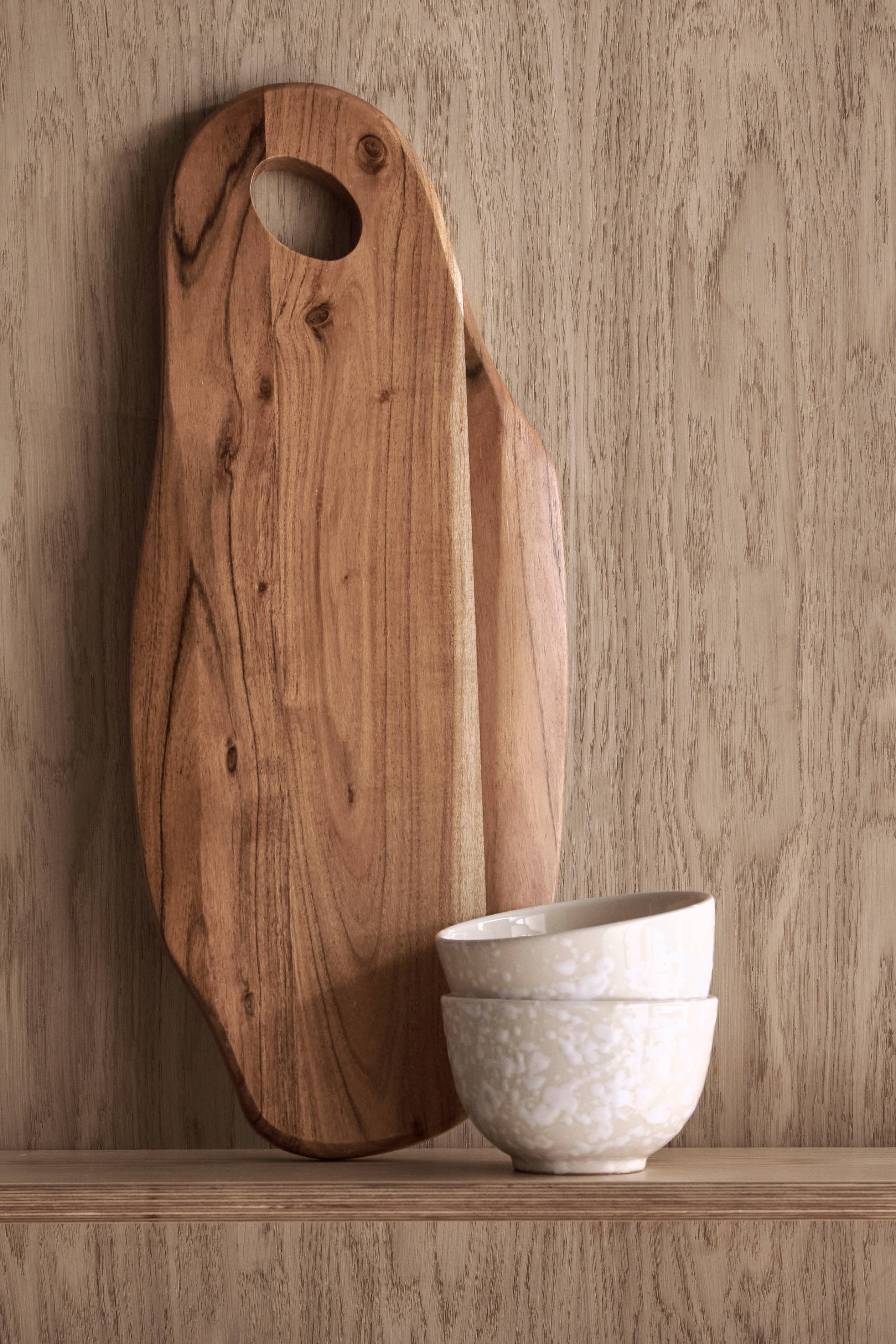 Skärbräda som också blir ett dekorativt uppläggningsfat. Av akaciaträ med mjuk, organisk form. Varje skärbräda är unik då träet har naturliga variationer.