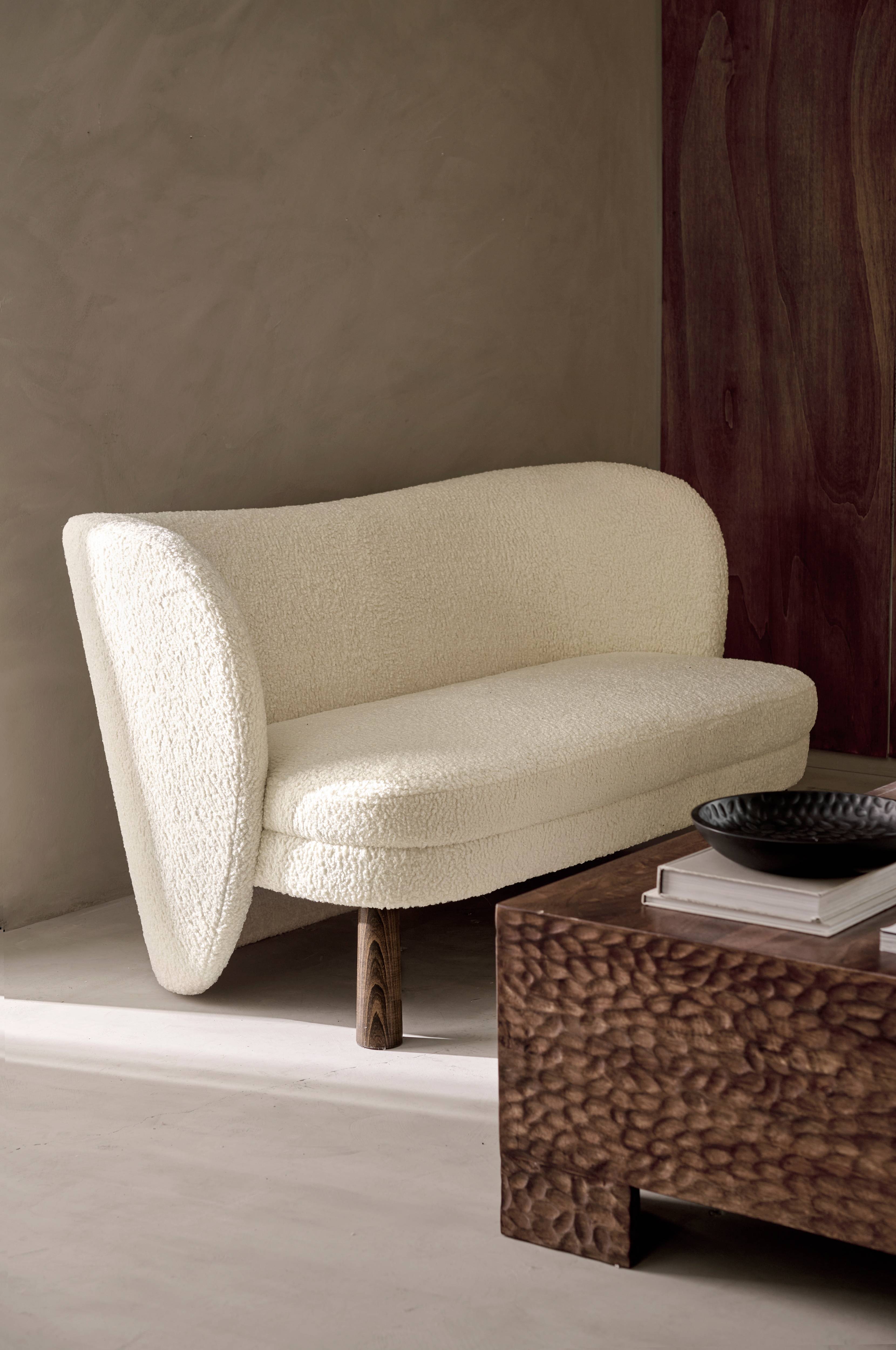2-sitsig soffa i modern design med rygg som går ända ner till golvet. Stomme i furu och plywood och ben i FSC-certifierad ask. Klädsel i fårskinnsimitation av 100% polyester. S-fjädrar och skumfyllning. Frihöjd under möbel 22 cm. Levereras monterad.