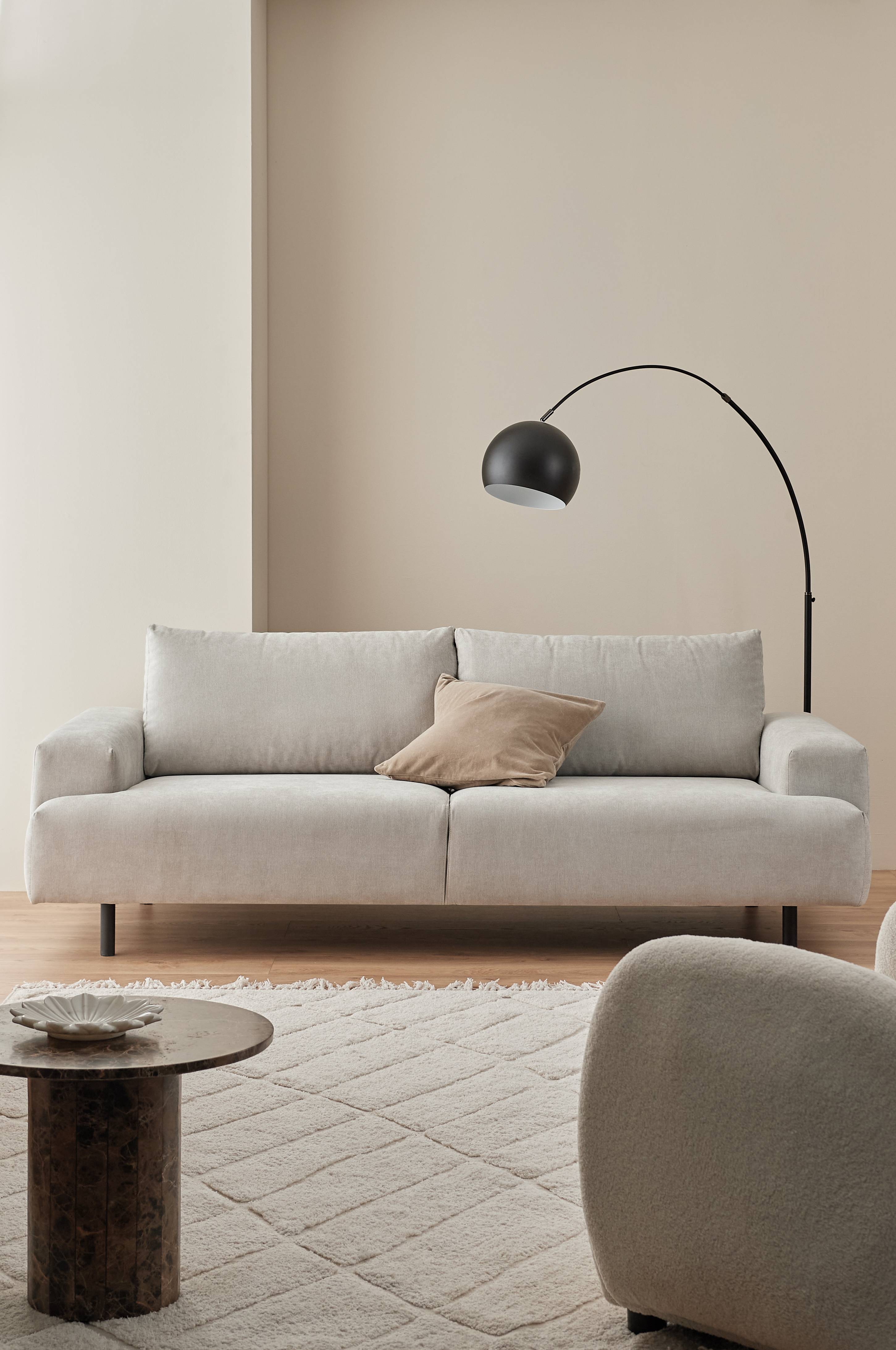 3-sits soffa med ett modernt uttryck. Klädsel i mjuk chenille av polyester. Ryggkuddarnas klädsel är avtagbar, fast klädsel i övrigt. Stomme av massivt trä och plywood, fyllning av PU-skum.