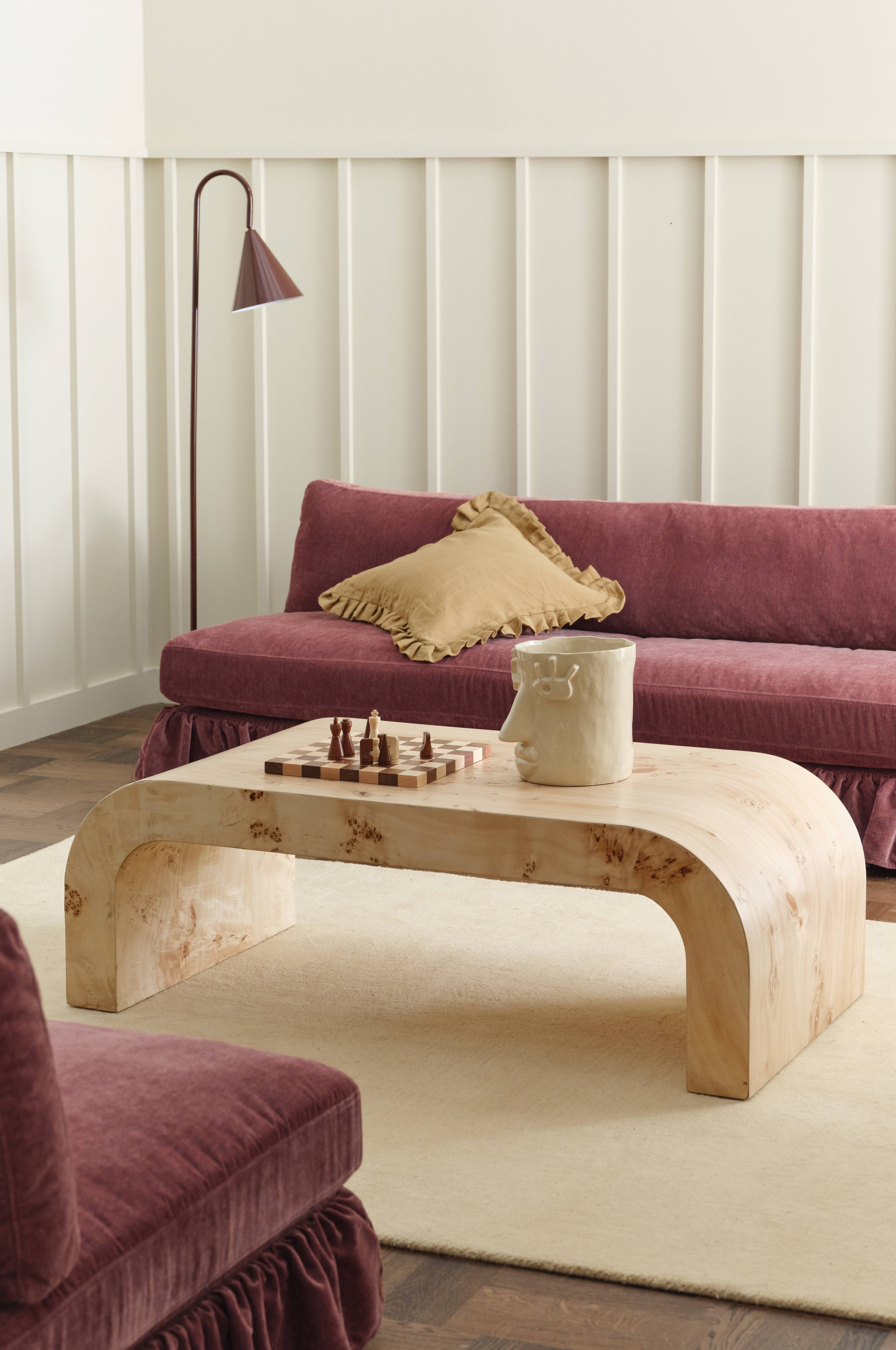 • Rektangulärt soffbord i fanérad plywood och mangoträ