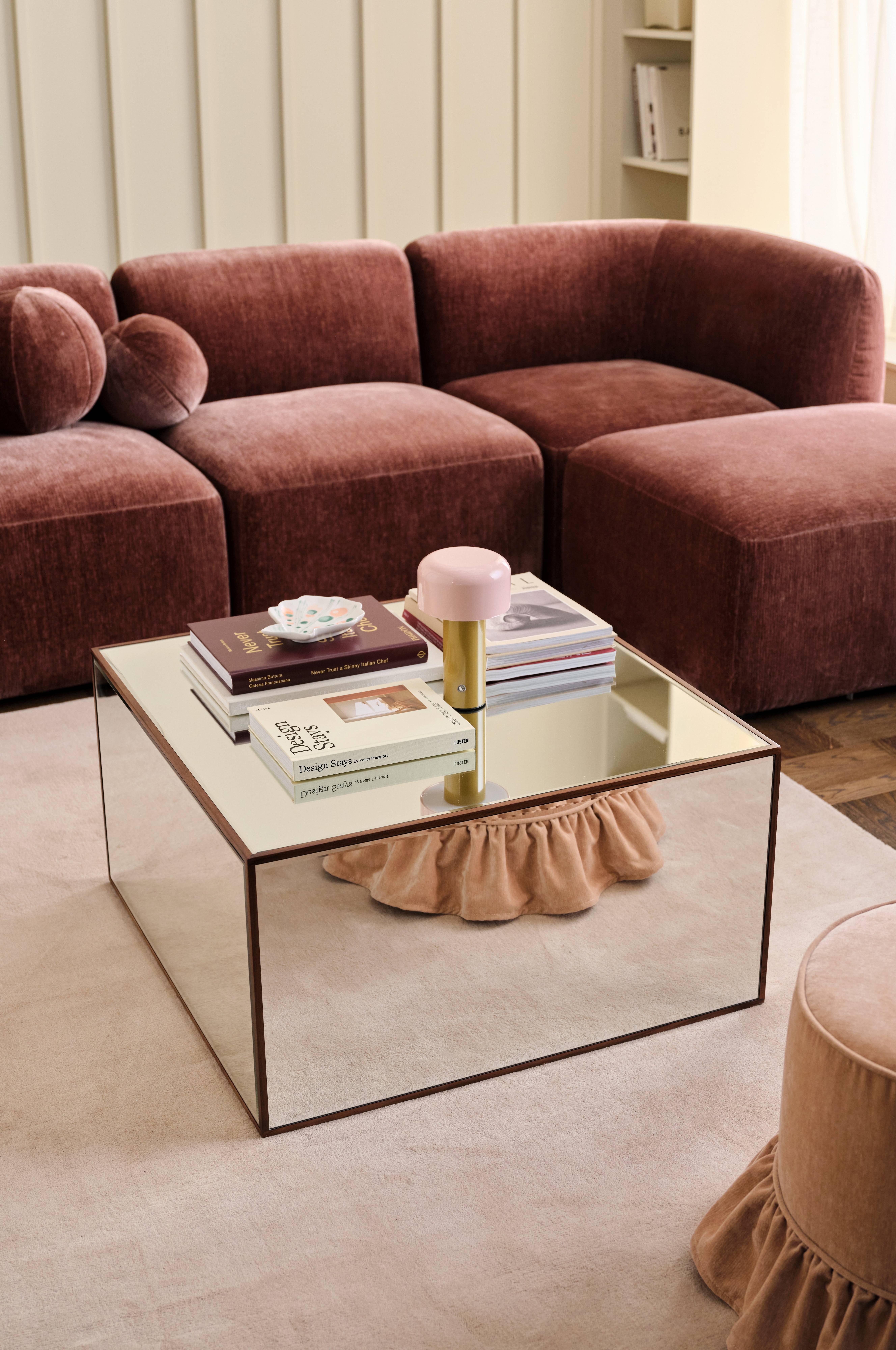 • Soffbord i spegelglas• Avfasade kanter i valnötsfanérad MDF