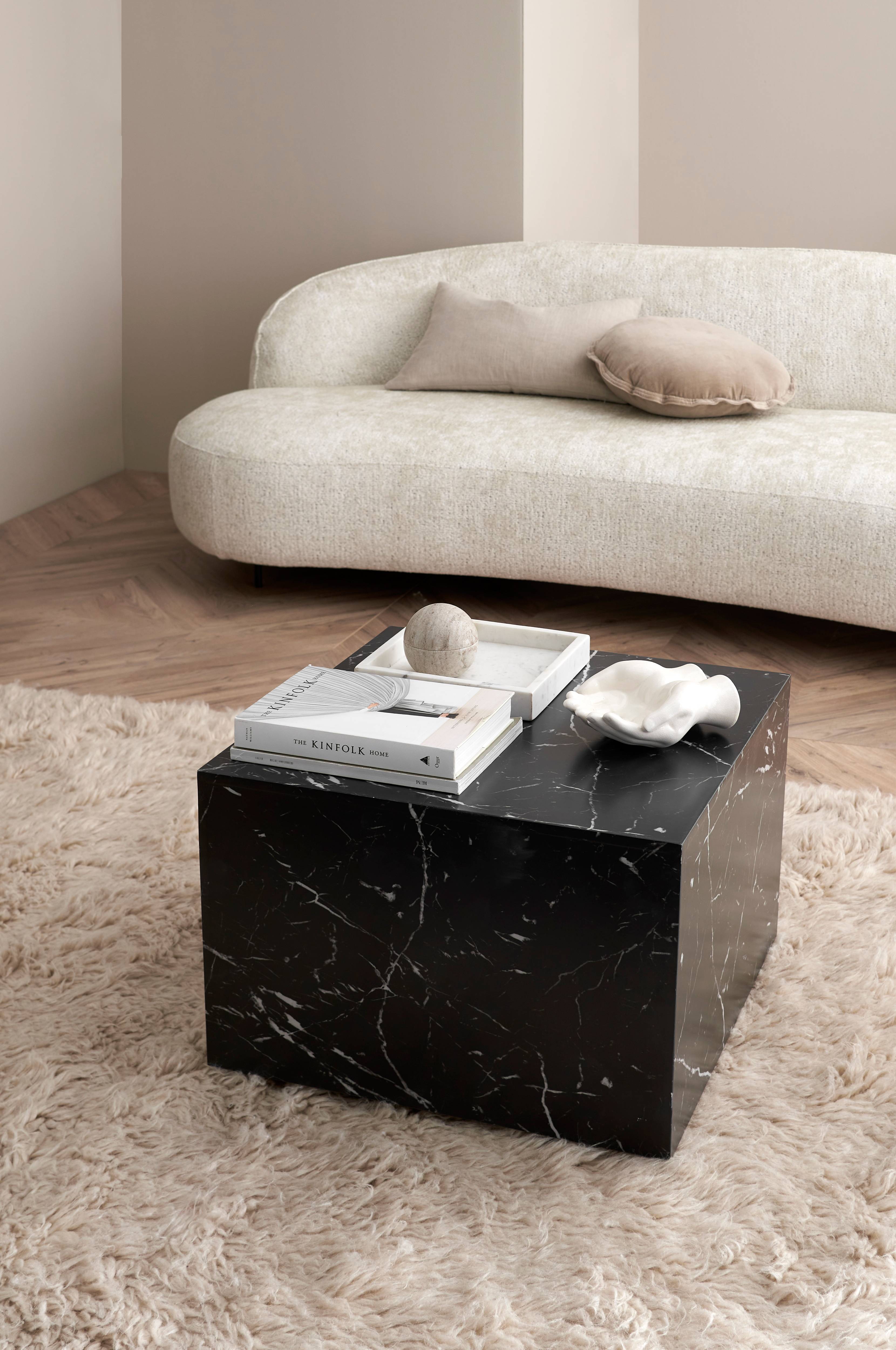 Soffbord / sideboard av folierad MDF i naturtrogen marmorlook med en tålig, vattenavvisande yta. Ben av plast, höjd på benen ca 3 cm. Stl 60x60 cm. Höjd 43 cm.