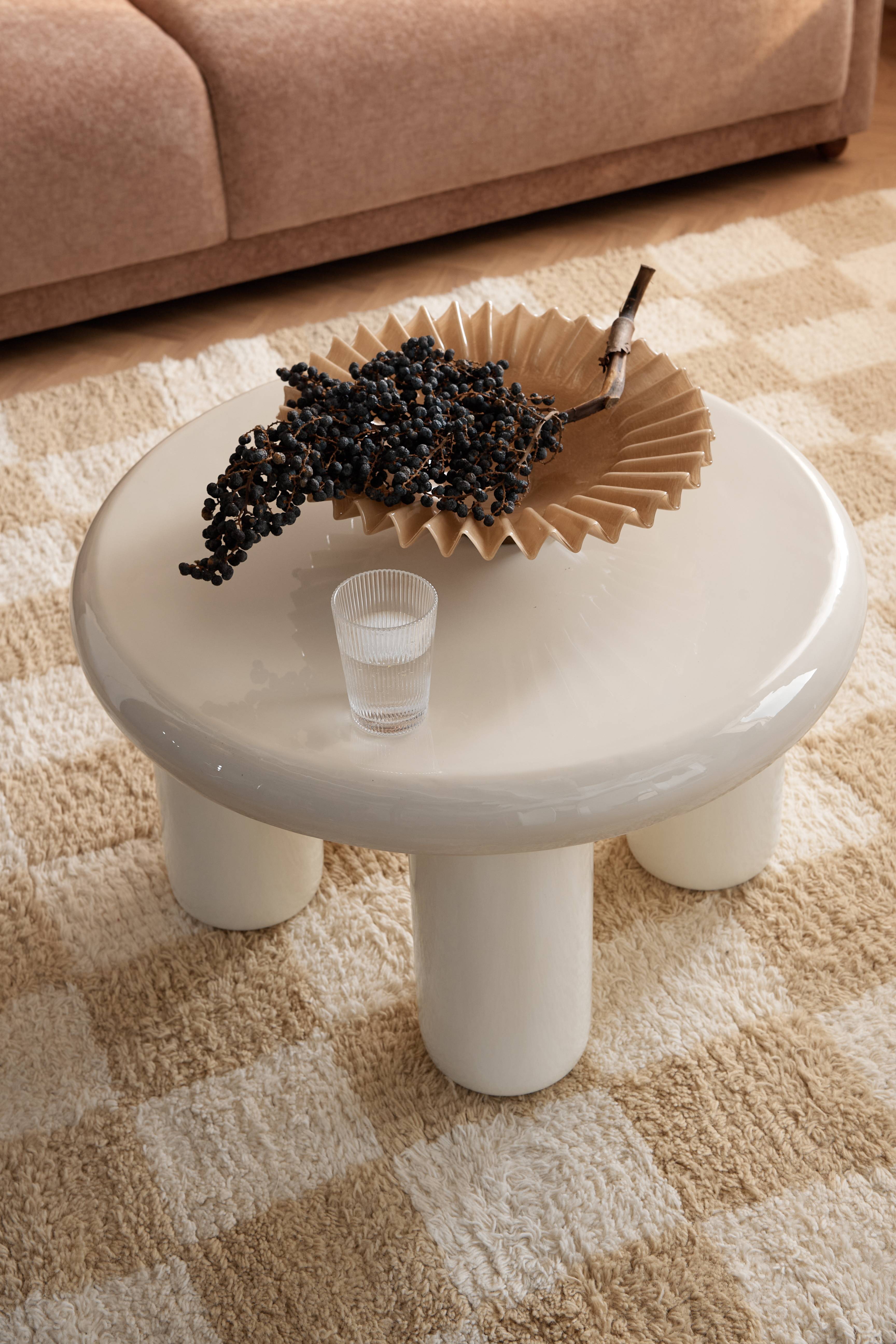 • Modernt soffbord i högblank metall• Emaljerad toppskiva• Pulverlackerade ben• Högglansiga ytor är mer mottagliga för repor än matta ytor. Använd glasunderlägg för att skydda bordsytan. Torka av med en mjuk trasa.• Max viktbelastning: 60 kg
