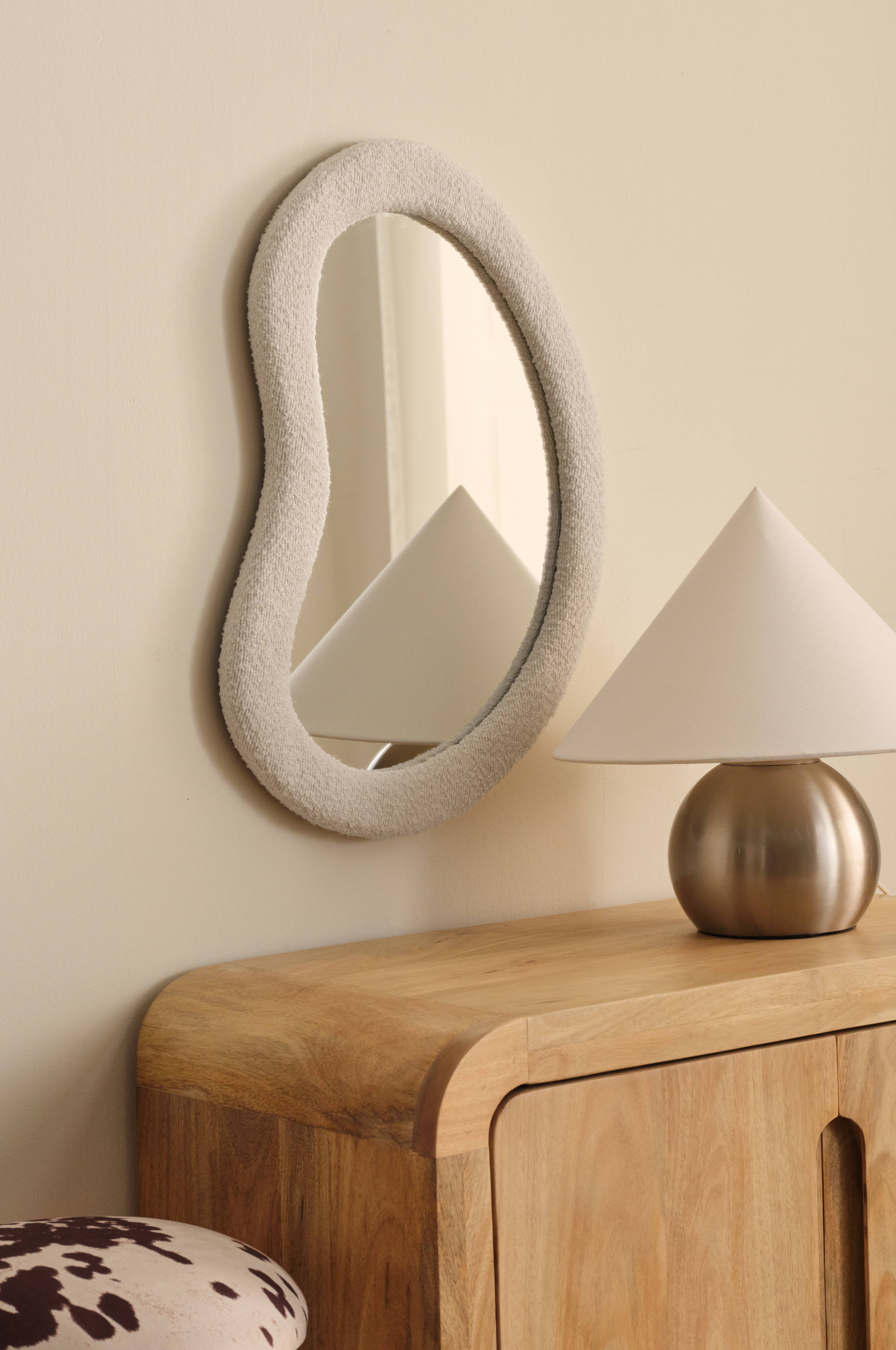 • Vägghängd spegel med oregelbunden, organisk form• Ram med klädsel i bouclétyg• Stomme i MDF