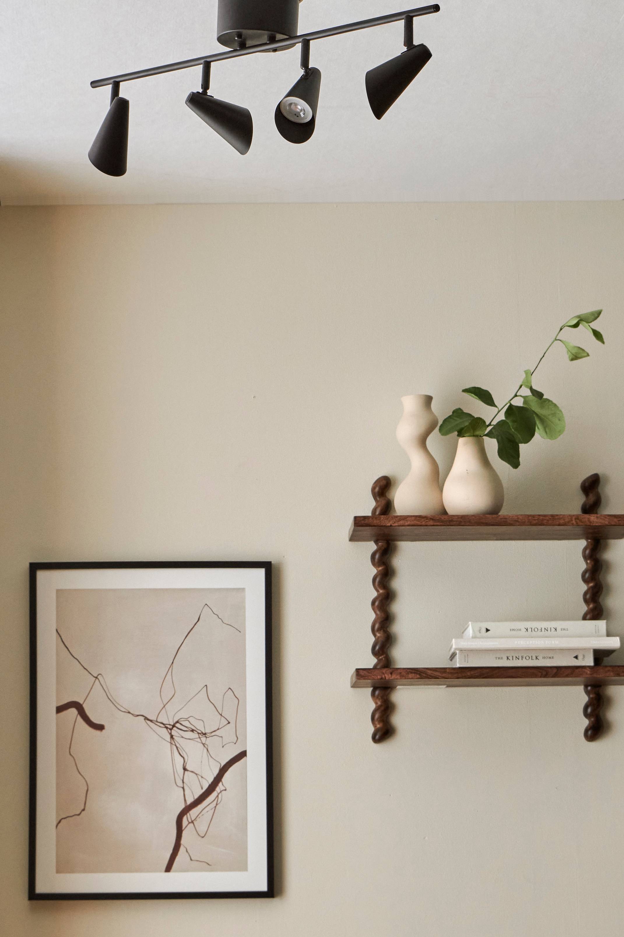 Spotskena av metall med 4 spotlights som kan vinklas. Takkoppens höjd mått: Diameter 12 cm. Höjd 6 cm. Krokupphängning. Max 10W LEDx4. Ljuskällor ingår ej. Jordad.