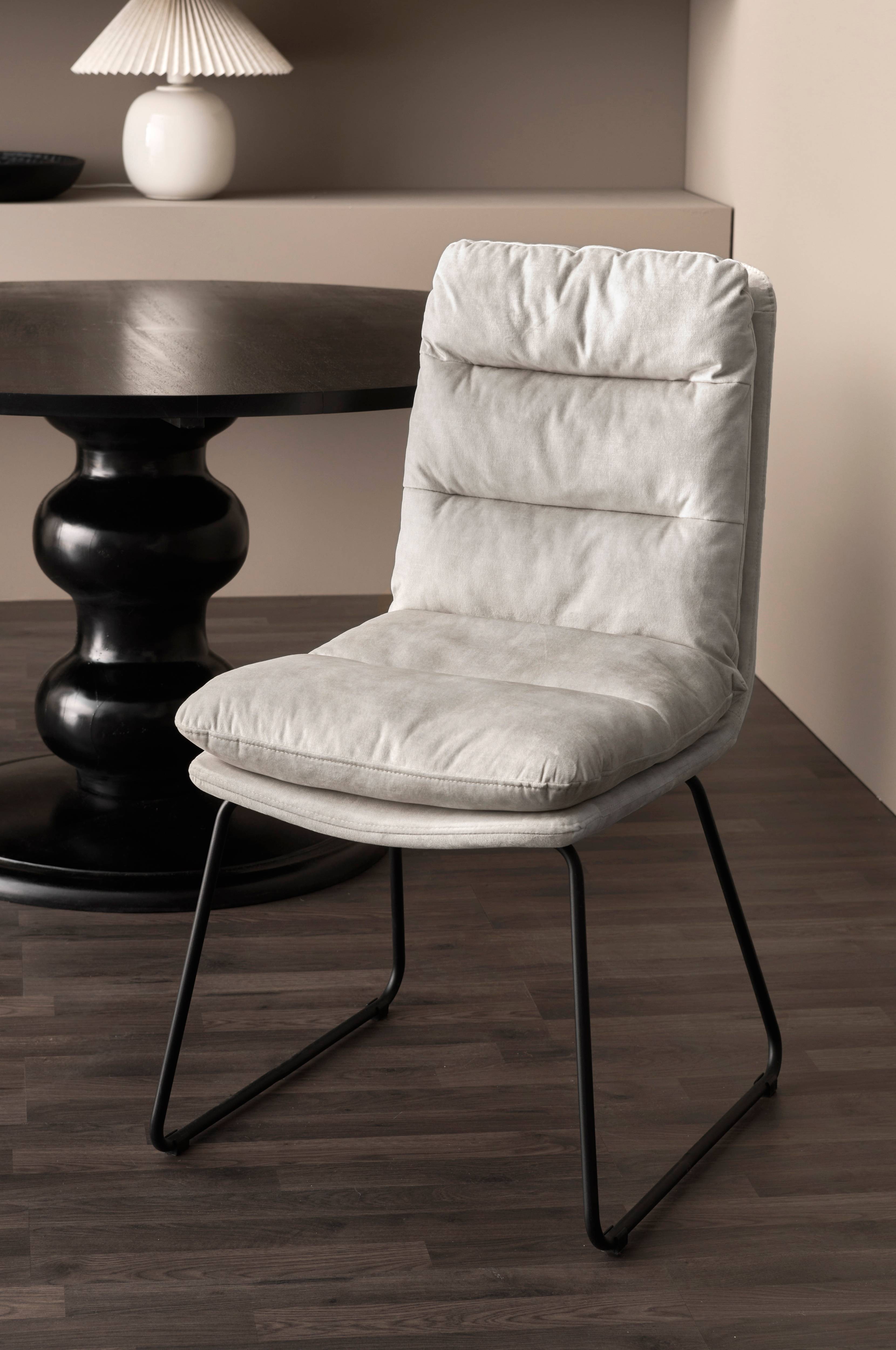 2 stolar med ben och stomme i pulverlackad metall. Klädd stomme och mjukstoppad dyna. Tyg i sammet. Enklare montering.