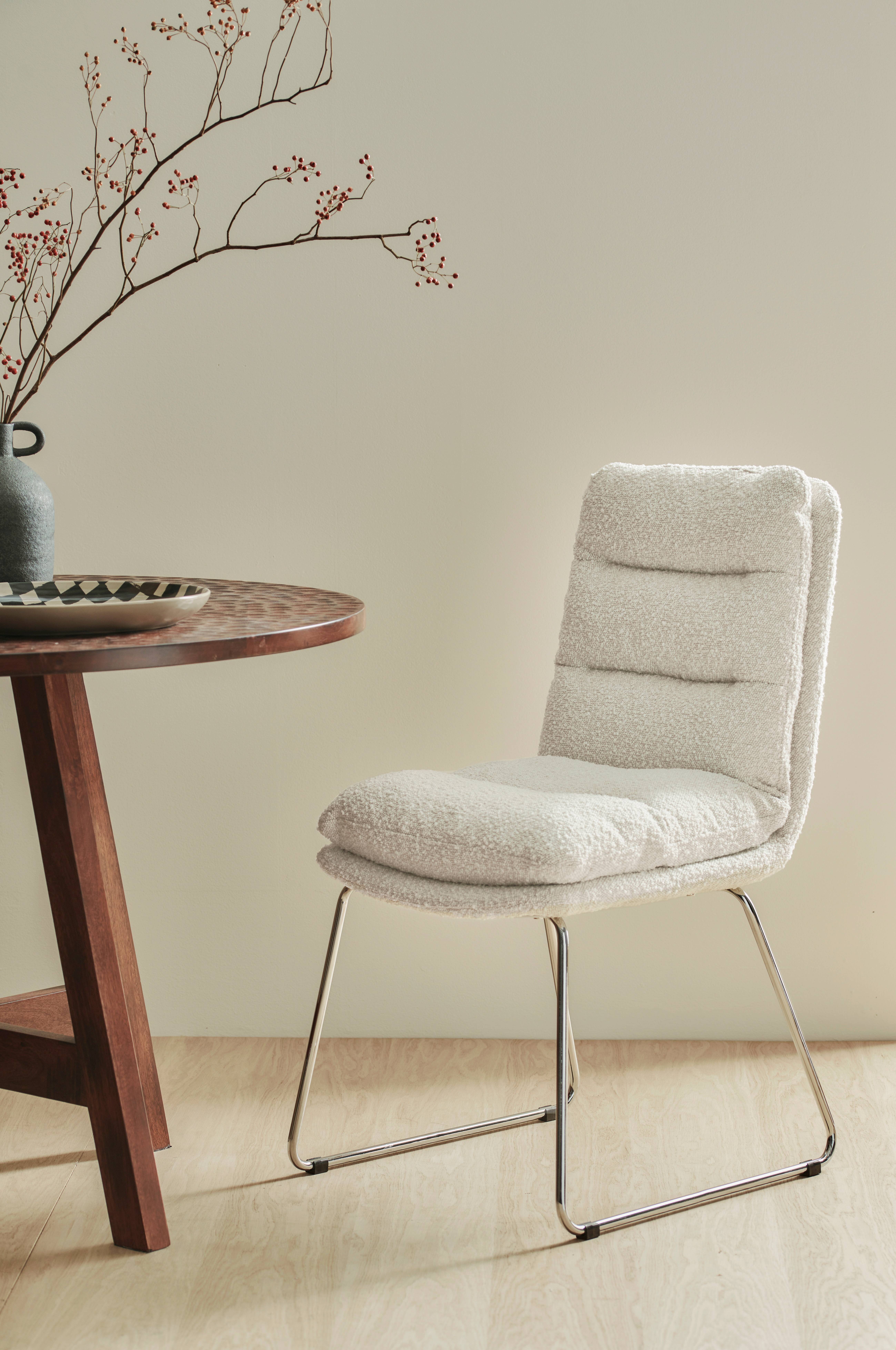 Stol med vadderad klädsel i bouclétyg. Kromade metallben med tassar. Max viktbelastning 130 kg. Säljs i 2-pack.