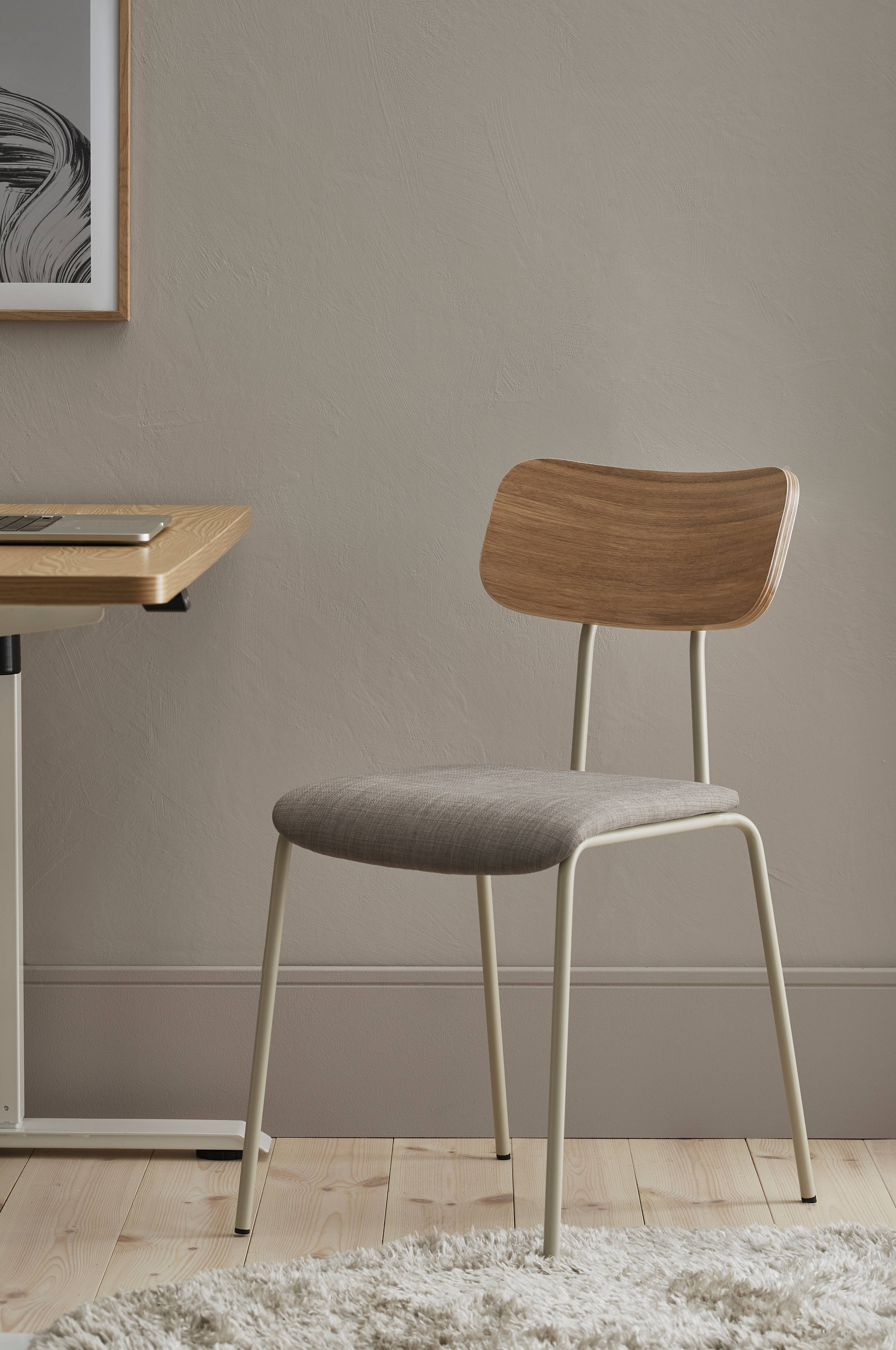 Smidig stol i klassisk design med ryggbricka i askfanér och en stoppad sits med ett slitstarkt tyg. Stilrena ben i pulverlackad färg. Höjd 79 cm, bredd 51 cm, längd 39 cm. Sitthöjd 47 cm, sittdjup 41 cm. Lättare montering.